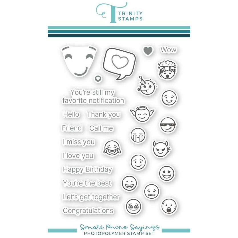 Experience the ultimate convenience with the Trinity Stamps Smart Phone Sayings Clear Stamp Set. This versatile set features 12 sentiment stamps and 18 image stamps, making it the ideal choice for all your cell phone inspired projects. Pair it with the Smart Phone Mini Slimline die set (tmd-271) for flawless results. Enhance your creations with the coordinating die set (tmd-c299, sold separately).
