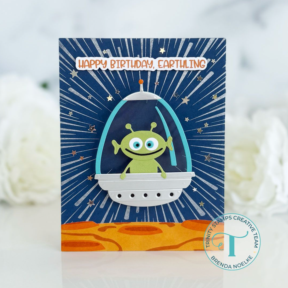 The Trinity Stamps Space Saucer Die Set features a sleek and modern flying saucer design with a domed top and detailed base, perfect for crafting futuristic or extraterrestrial scenes. Great for space-themed cards, interactive elements, or out-of-this-world party décor, this die set adds bold sci-fi flair to your projects. Compatible with most standard die cutting machines.