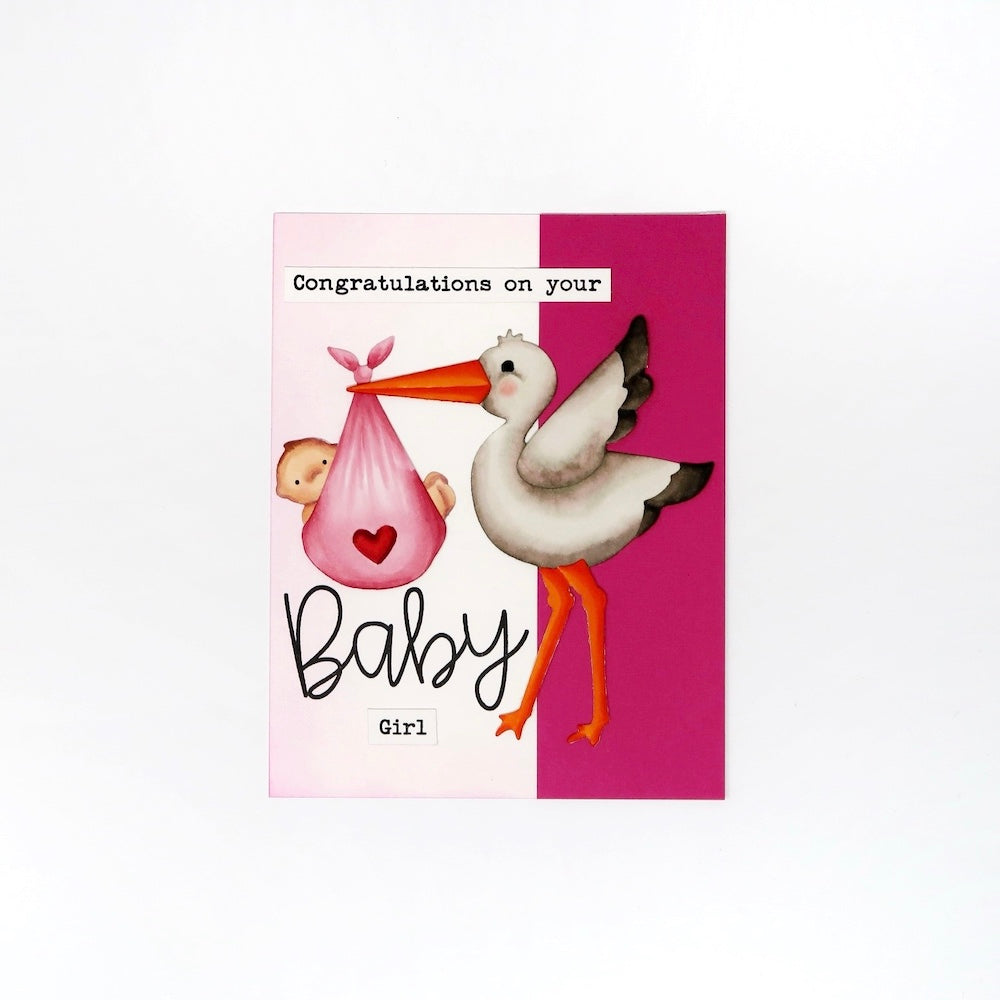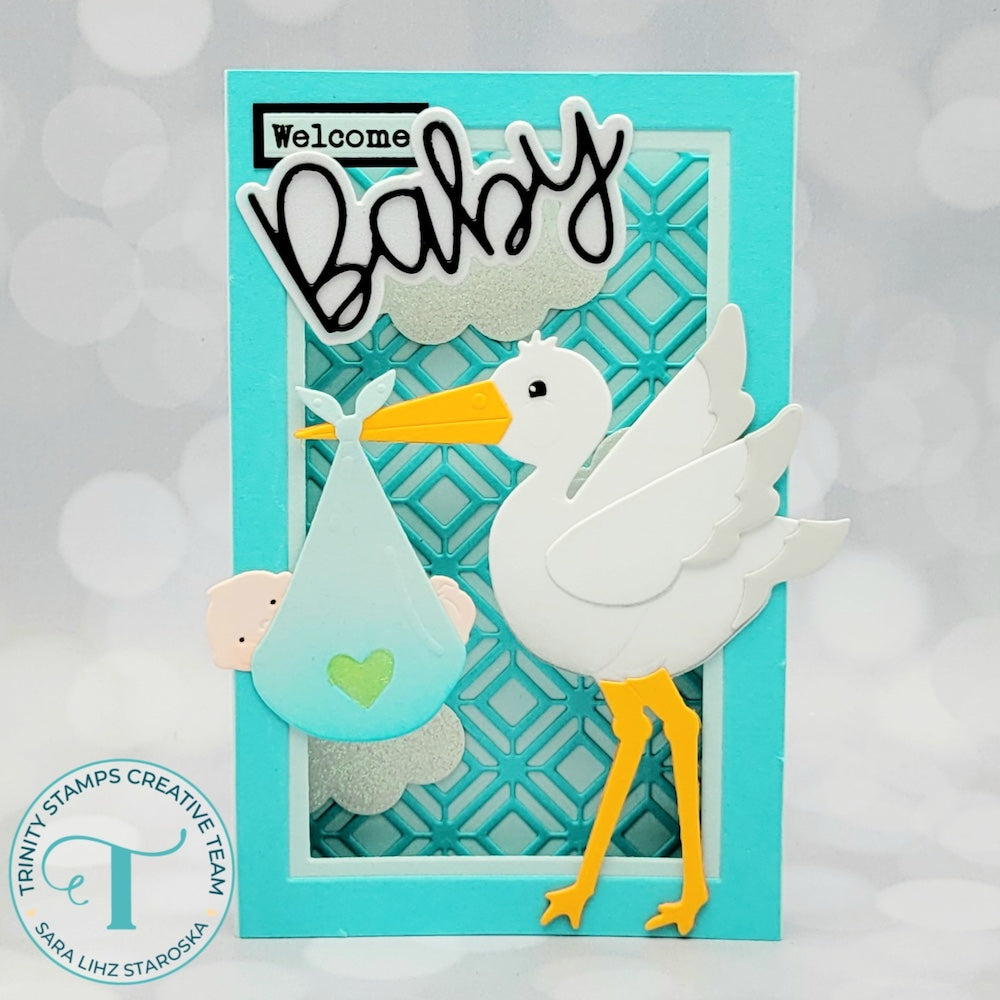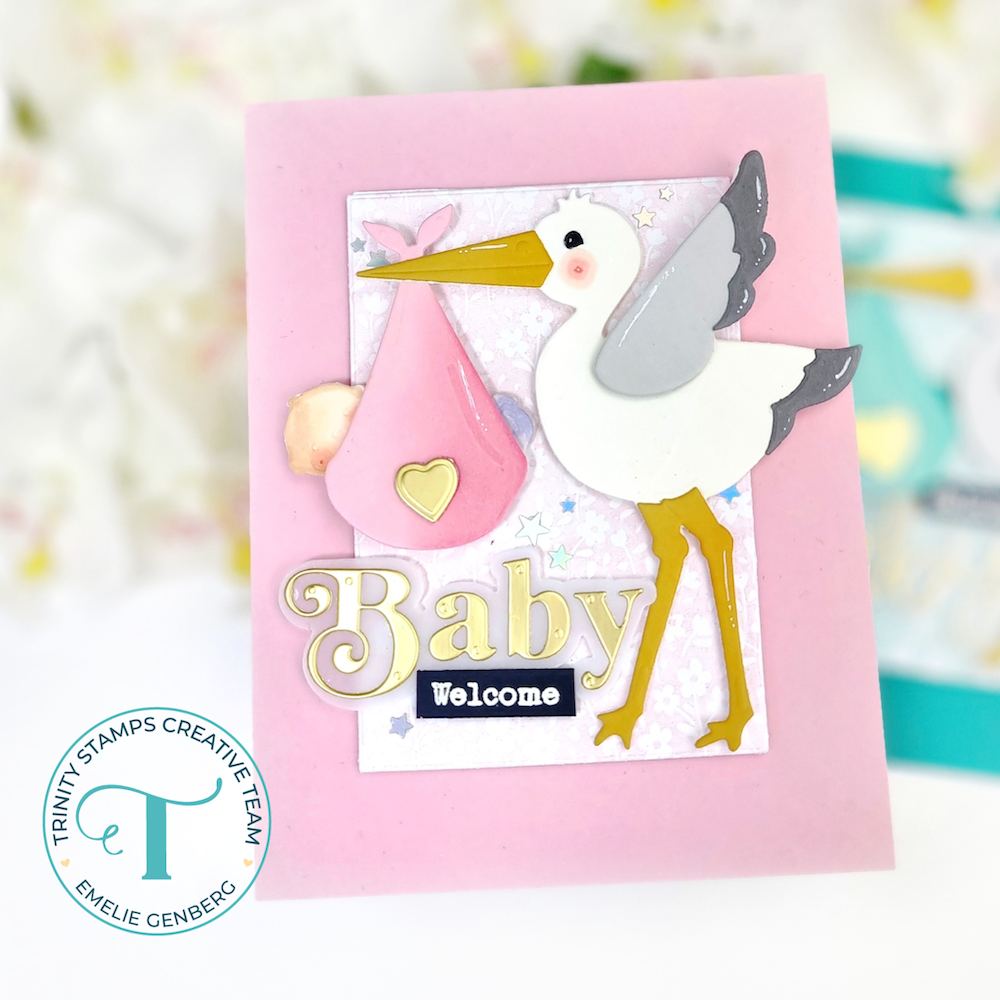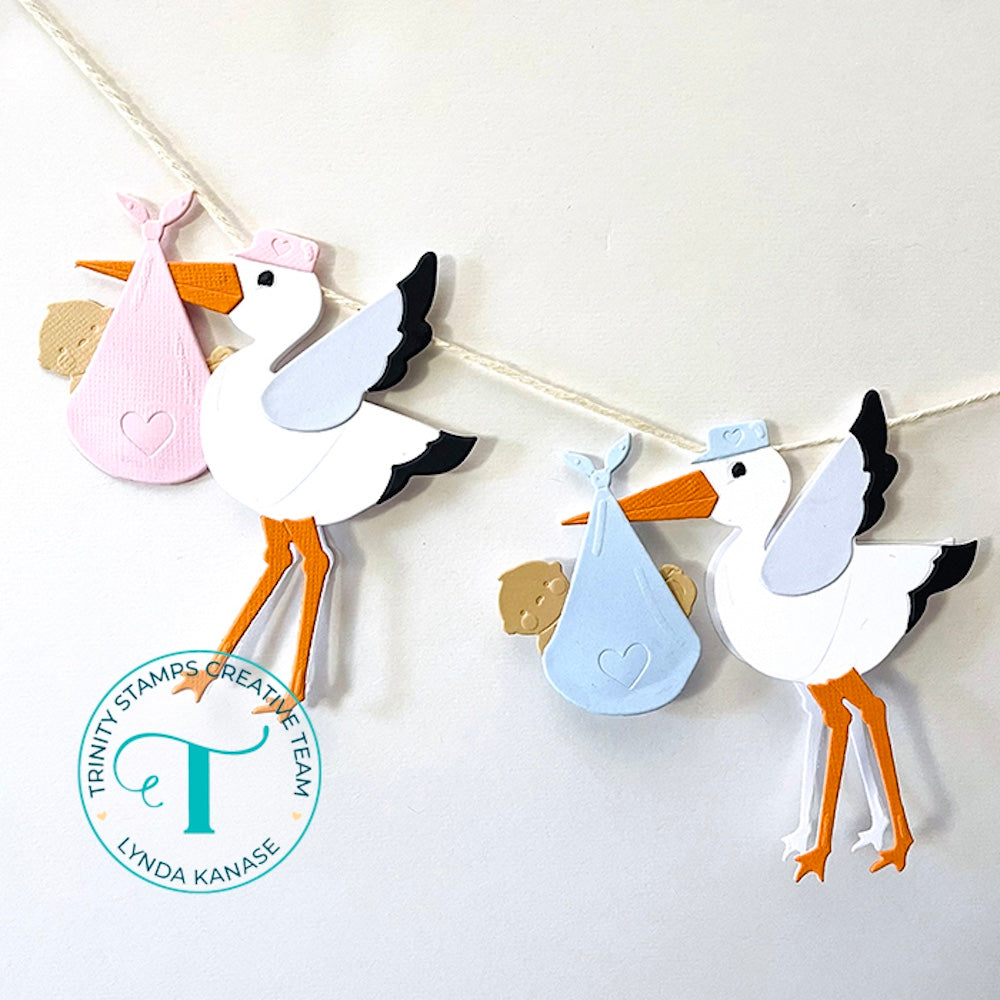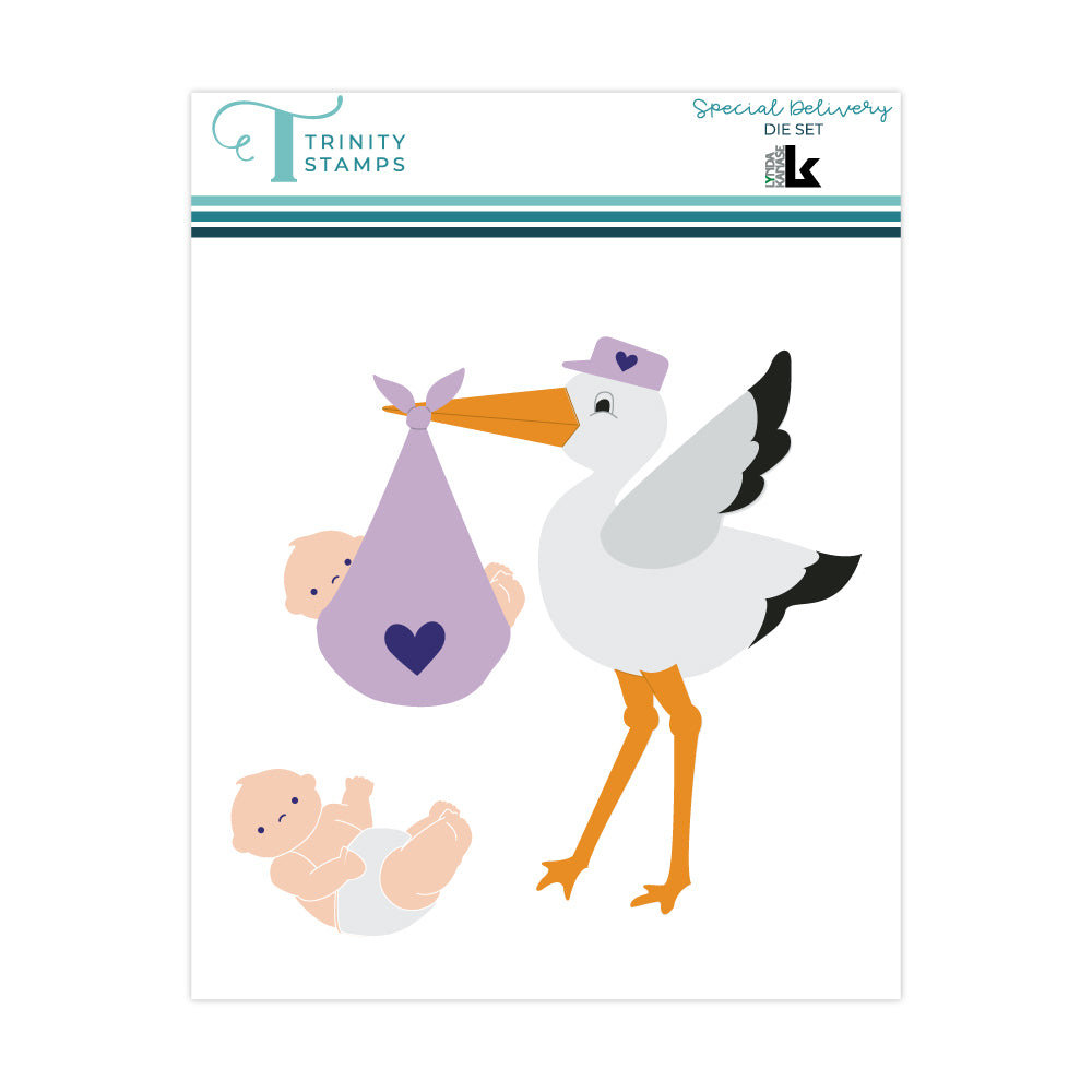 Introducing Trinity Stamps Special Delivery Die Set! This 7-piece set features a big stork with a unique 'special delivery' pouch and a tiny baby to tuck inside. Designed by Lynda Kanase.