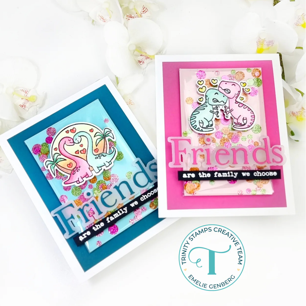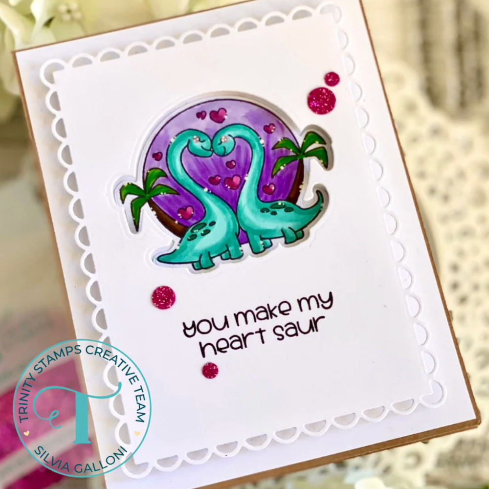 The Trinity Stamps T-riffic Dinos Die Set includes 13 dies that perfectly cut out all images and sentiments from the coordinating T-riffic Dinos 4 x 8 inch Stamp Set (sold separately). Bring your dino-themed projects to life with layered dimension and fun!