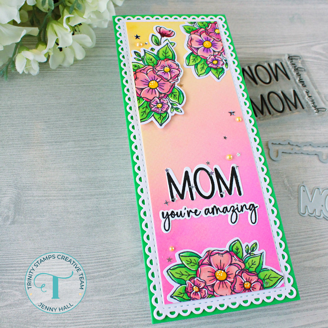 The Trinity Stamps Wow Mom 3 x 3 Stamp And Coordinating Die Bundle is the perfect way to celebrate your amazing mother. This two-piece set includes a sentiment stamp and a coordinating die that will cut out each piece of the sentiment.