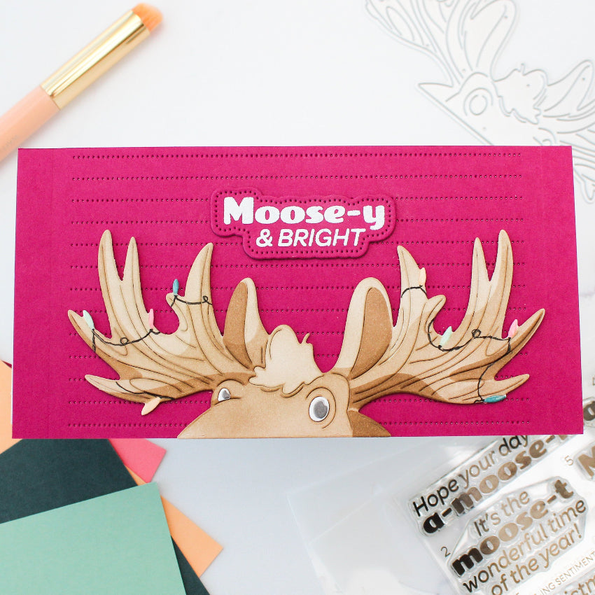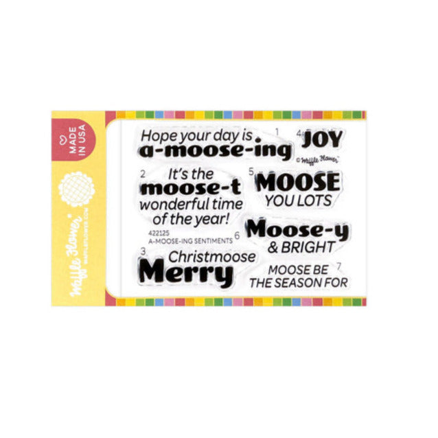 Waffle Flower A-moose-ing Sentiments Clear Stamps is a 3x4 inch set that includes 7 bold and playful sentiments designed to suit a variety of card styles. Each phrase is numbered to match its coordinating die, making alignment simple when used with the A-moose-ing Sentiments Dies 422126, sold separately. The matching dies feature a pierced border that pairs beautifully with Waffle Flower’s Piercing Textures and Layering dies, giving your cards a polished, professional finish.