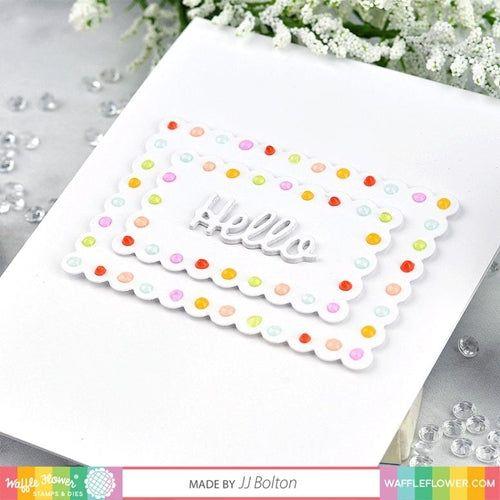 The ATC Layers with 4 straight rectangles and 3 layering scalloped rectangles, you will have fun creating your own ATC cards in a snap! Whether you trade your ATC’s with friends or keep them for yourself, this die set will be a staple you’ll reach for again and again. These smaller rectangle sizes also work great for layers on A2 cards and can be used to house sentiments too.