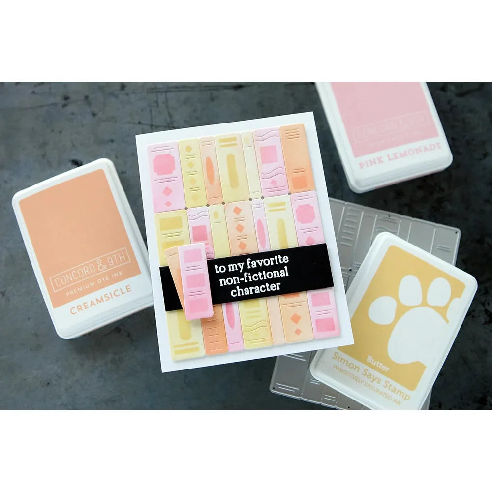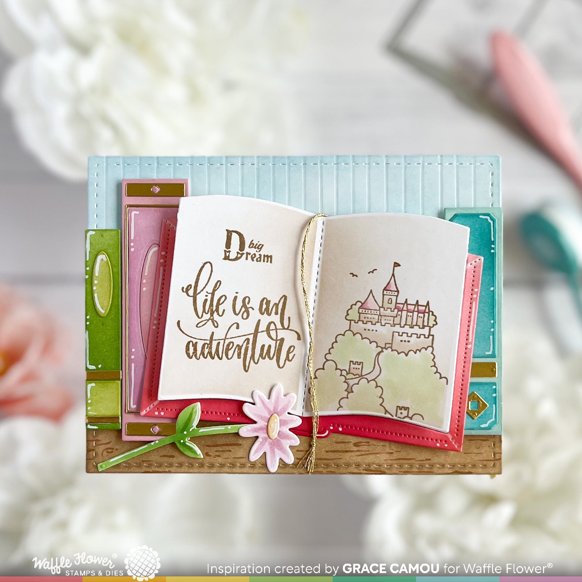 The Waffle Flower Bookshelf Panel Die makes it easy to create a striking backdrop featuring stacked rows of books in varying widths and levels of ornamentation. This versatile design allows you to trim off a single row of books for a different look or to embellish the inside of your card. Customize the books and details with your preferred medium, or add color effortlessly by pairing it with the Bookshelf Panel Coloring Stencils. The die measures approximately 3.75 x 5 inches and coordinates with the Bookshelf Panel Coloring Stencils 421919.