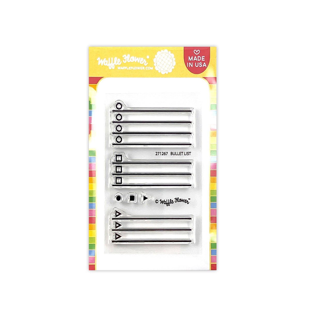 The Bullet List Stamp set: 2 x 3 inch set of 6 stamps.