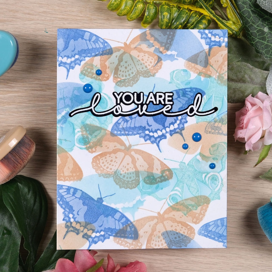 Coordinates with Butterfly Trio Matching Dies 421928 and Butterfly Trio Coloring Stencil 421929, both sold separately.
