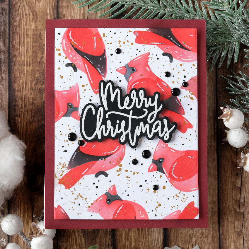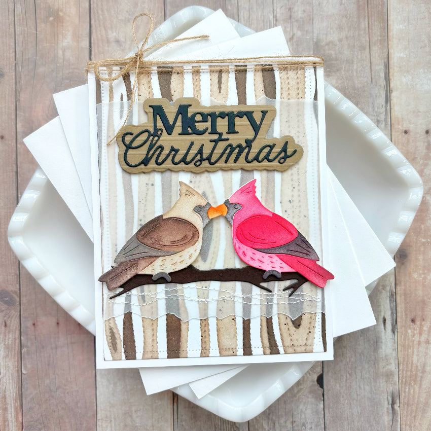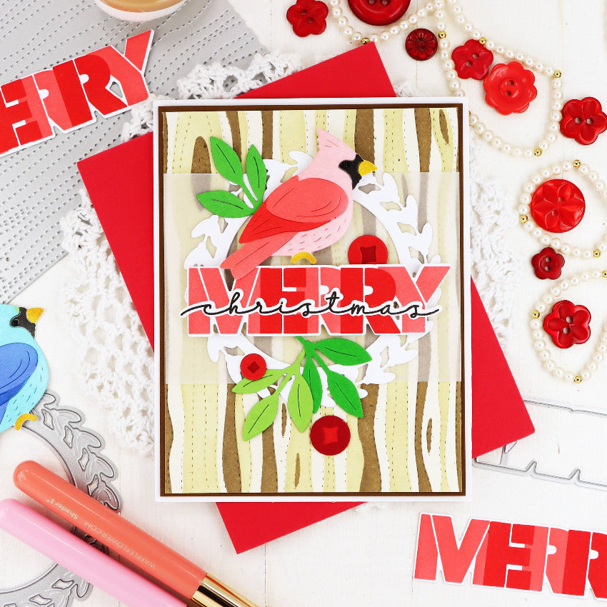 Waffle Flower Cardinal Duo Die-n-stencil includes two mirrored cardinal dies and one coordinating stencil, making it easy to add color and detail to both birds using a single stencil, just flip it over for the second image. These timeless cardinals are perfect for winter and holiday scenes, whether framing a sentiment or accenting a nature-inspired arrangement. Set includes 2 dies and 1 stencil. Assembled cardinal measures approximately 2 x 2.13 inches.