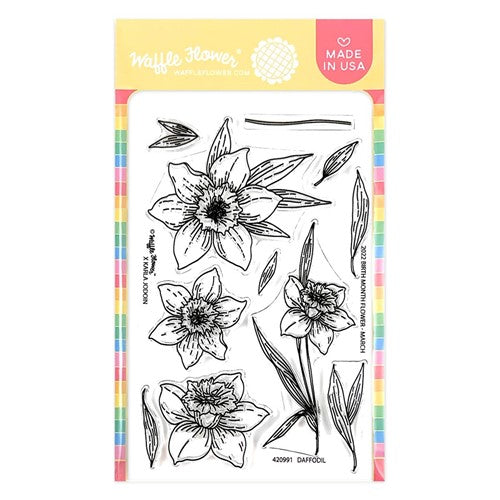 Celebrate special winter birthdays with the Daffodil Stamp Set by artist Karla Jodoin. The second in the Birth Flower series, this set features birth flowers for the month of March. This builder set features a variety of single stems, single blooms, and multiple blooms that allow you create custom arrangements. The intricately detailed stamps work well for a variety of techniques including heat embossing and coloring with markers/paints.