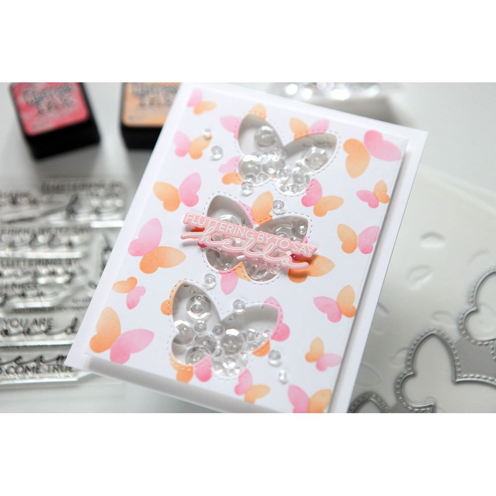 The Duo Tone Butterfly Stencil Set by Waffle Flower is a fantastic addition to your crafting toolkit, designed specifically for use with the Pop-up Butterflies Panel Die. However, this versatile stencil set can also be used on its own, making it a must-have for any butterfly lover. With these stencils, you can effortlessly create two-tone or multi-tone butterfly designs.