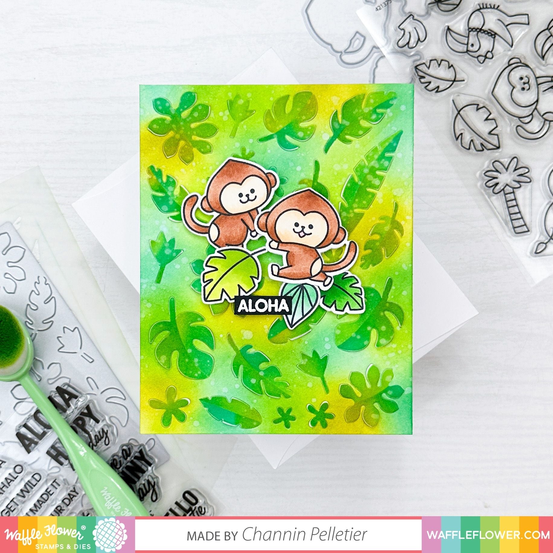 The Waffle Flower Duo-Tone Tropical Leaves Stencils are a two-layered stencil set that allows you to effortlessly create a colorful tropical background design. By using both layers, you can achieve a multi-colored and vibrant tropical leaf pattern with ease.
