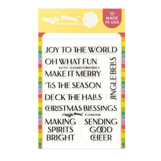The Waffle Flower Elegant Christmas 2 Clear Stamps set is a 3 x 4 inch collection featuring 9 classic Christmas and holiday sentiments, perfect for adding a timeless touch to all your seasonal projects. Coordinates with the Elegant Christmas 2 Dies 421732, sold separately.