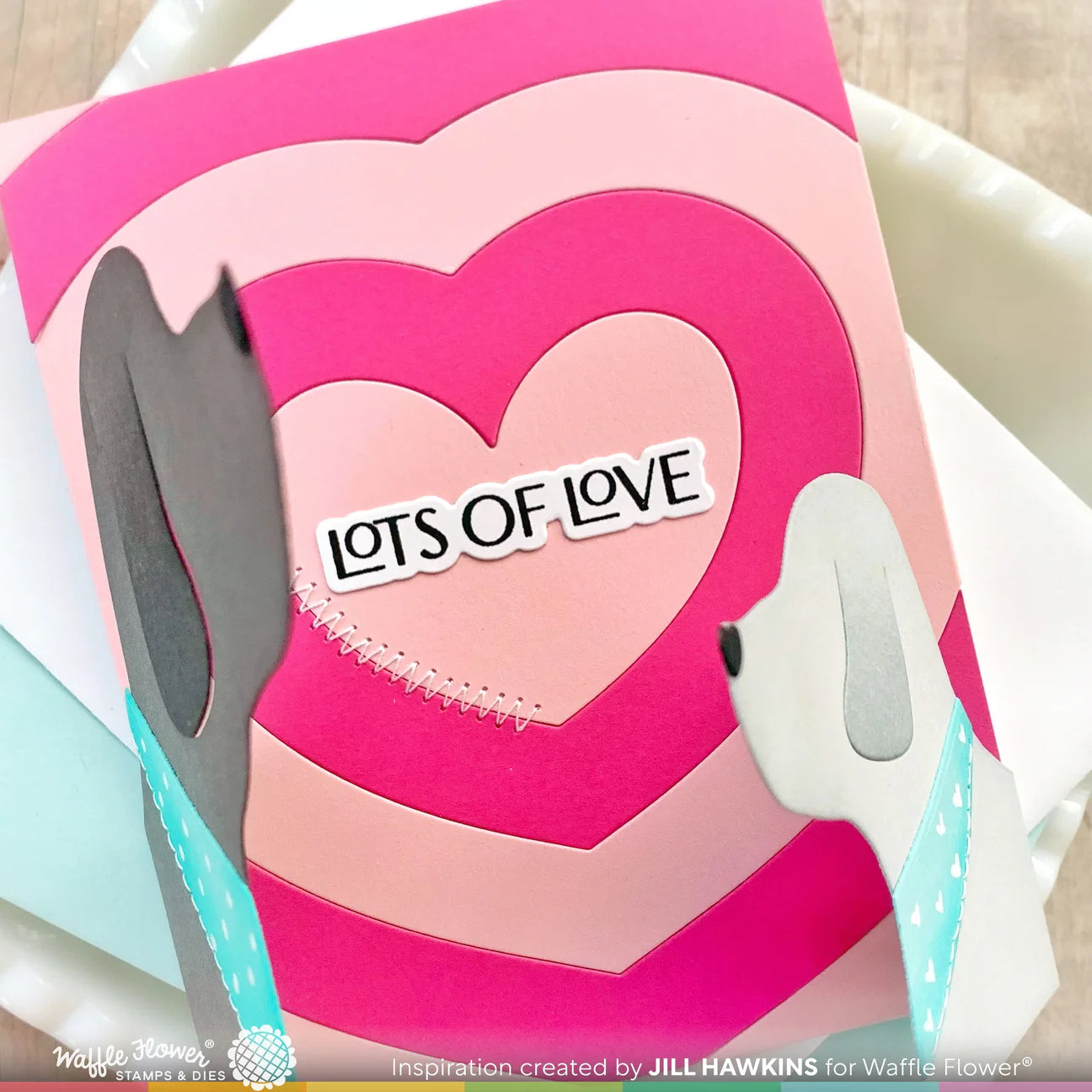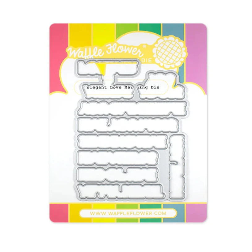 Waffle Flower Elegant Love Matching Die coordinates with the Elegant Love Clear Stamps 421601, sold separately. This single die cuts out all nine stamped sentiments at once for quick and easy crafting.