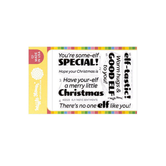 Waffle Flower Elf-tastic Sentiments Clear Stamps is a 3x4 inch set that features a bold and playful font that complements a wide range of card styles. Designed to coordinate with the Elf-tastic Sentiments Piercing Matching Dies 422124, sold separately, these sentiments gain an extra touch of charm with a stitched-style pierced border. Each sentiment is numbered on the stamp set and etched on the back of its matching die, making it quick and easy to find the perfect match.