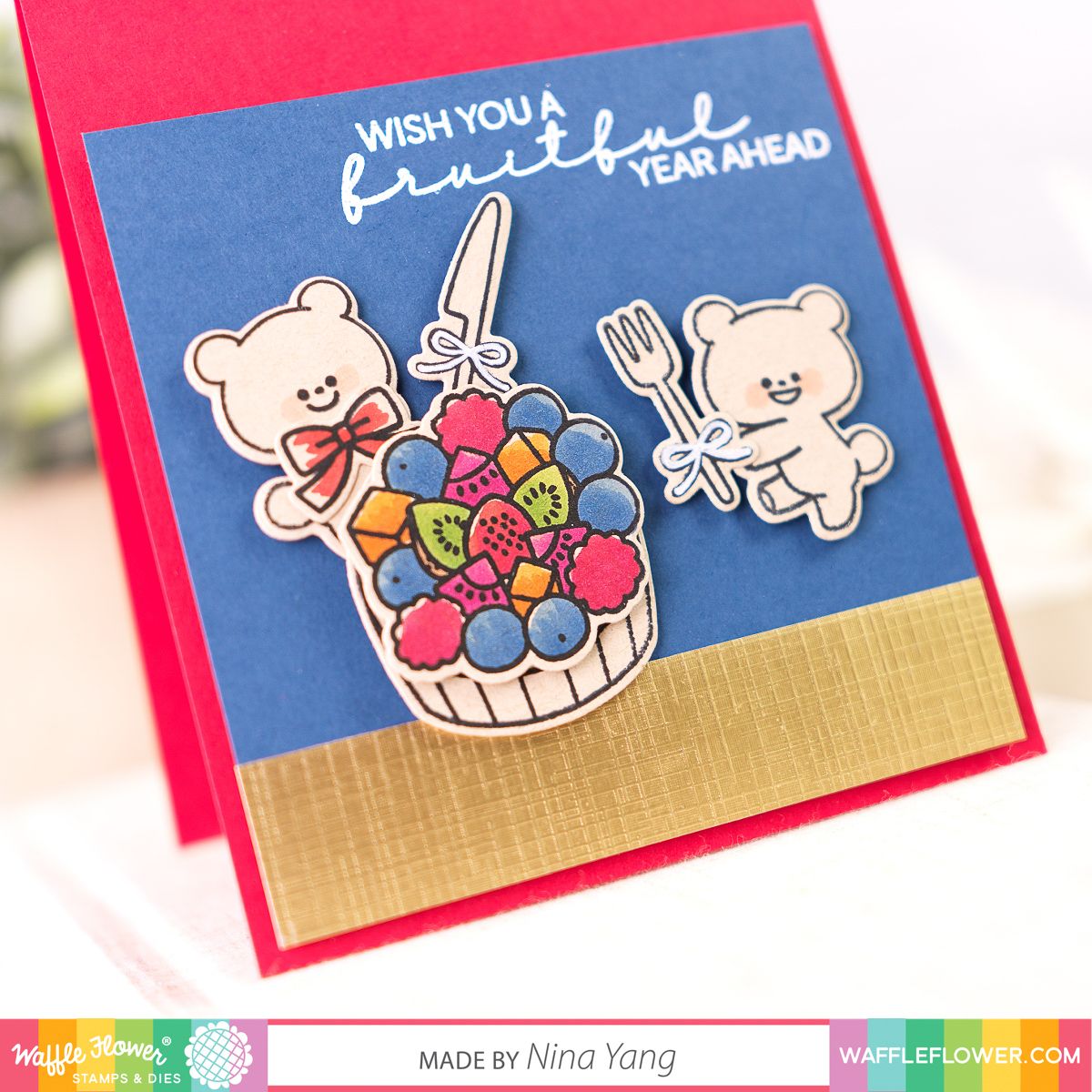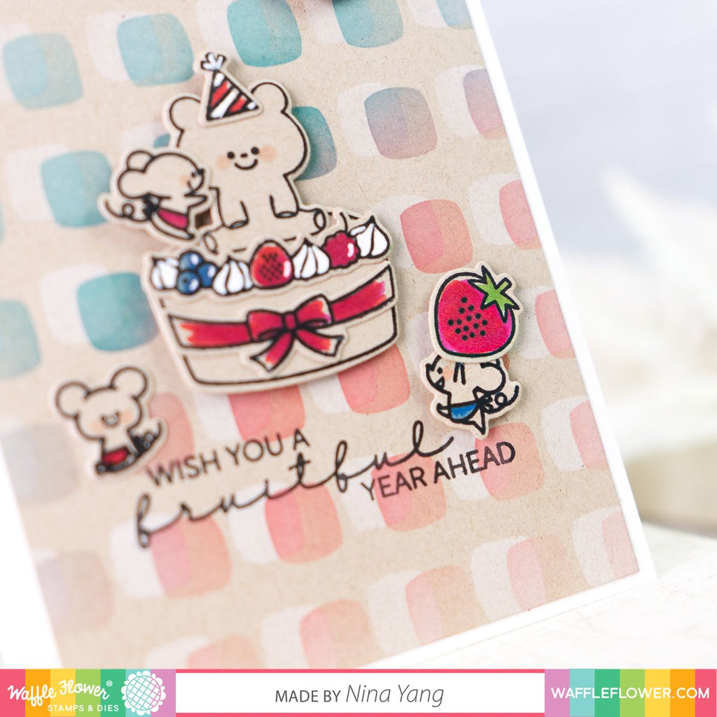 The Waffle Flower Fruity Cake Matching Dies are designed to complement the Fruity Cake Stamp Set and are available for purchase separately or in a combo package.