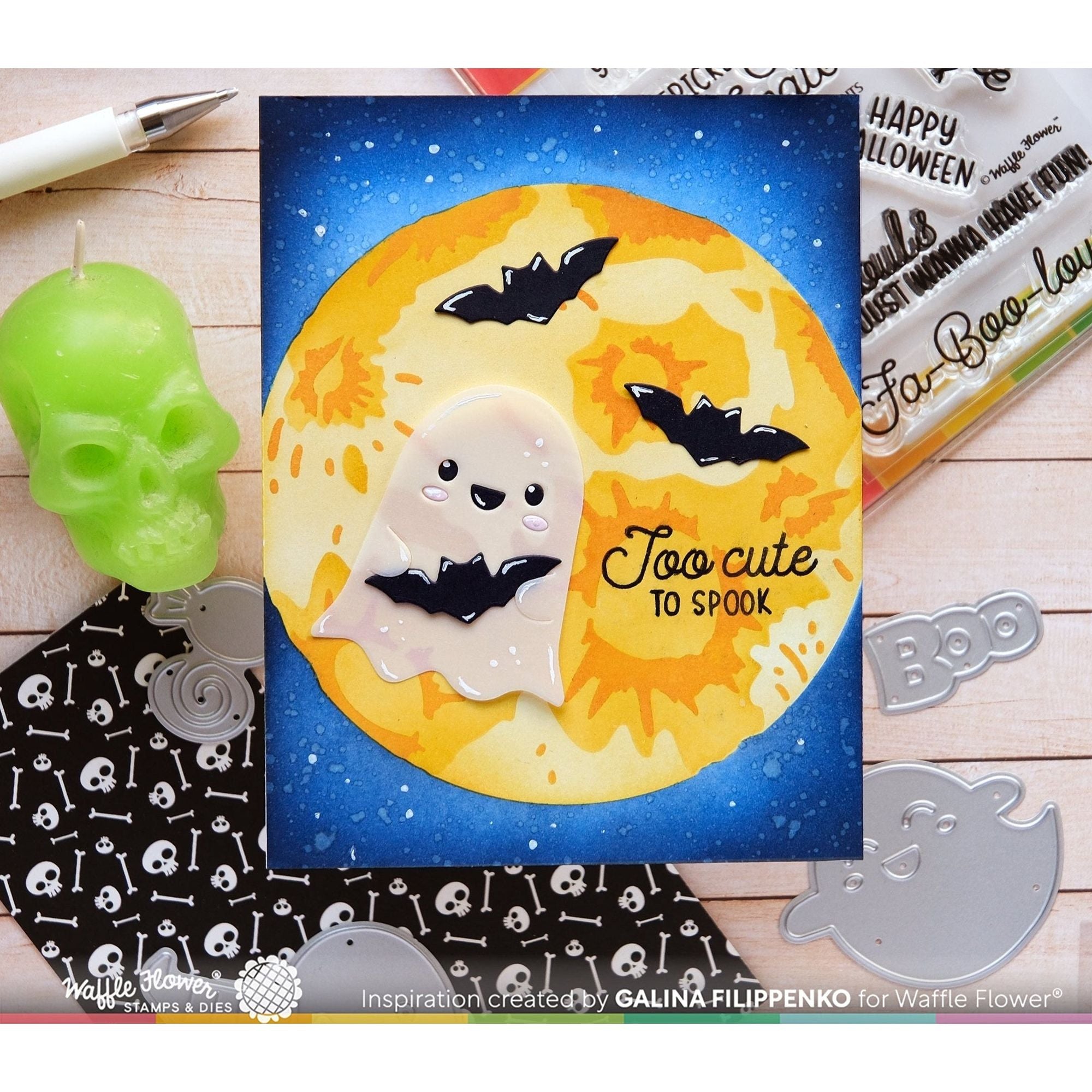 The Waffle Flower Full Moon Stencils set is designed to cover an entire A2 card front, providing all the layers needed to create a realistic yet whimsical full moon. The stencils can be used both horizontally and vertically for versatile designs. This set includes 4 stencils, each measuring 5.25 x 6.5 inches.