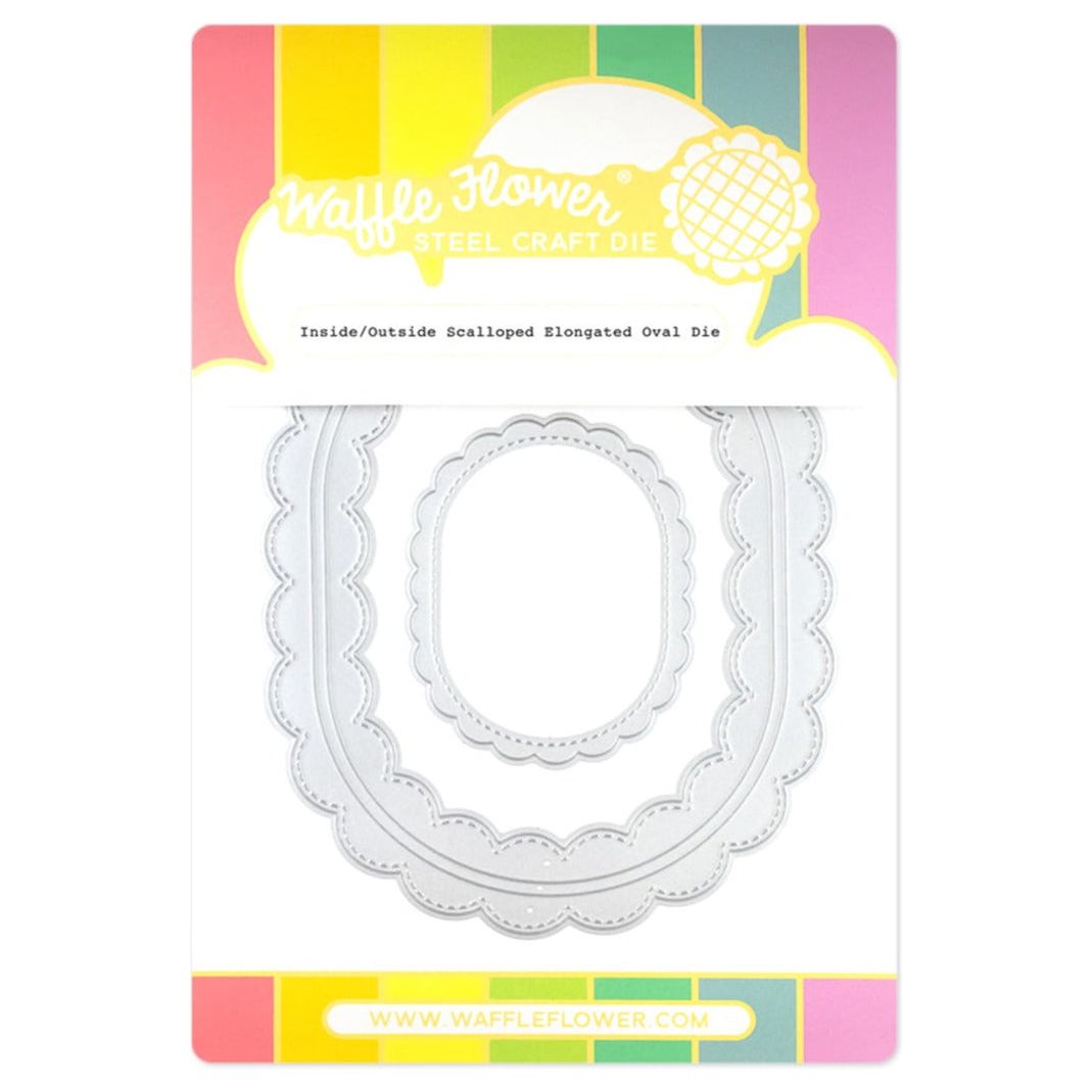 Mix and match elements to create custom frames and panels with the Waffle Flower Inside Outside Scalloped Elongated Oval die set! The Inside/Outside dies feature a unique design that cuts an outside scalloped frame, middle thin frame, and inside scalloped frame all in one die. The resulting die cuts can be used separately or together to create frames, shakers, layers, and more. The sweet scallop design includes a stitch detail that complements a variety of card styles. This Inside Outside die is in the elongated oval shape, perfect for filling an A2 card front.