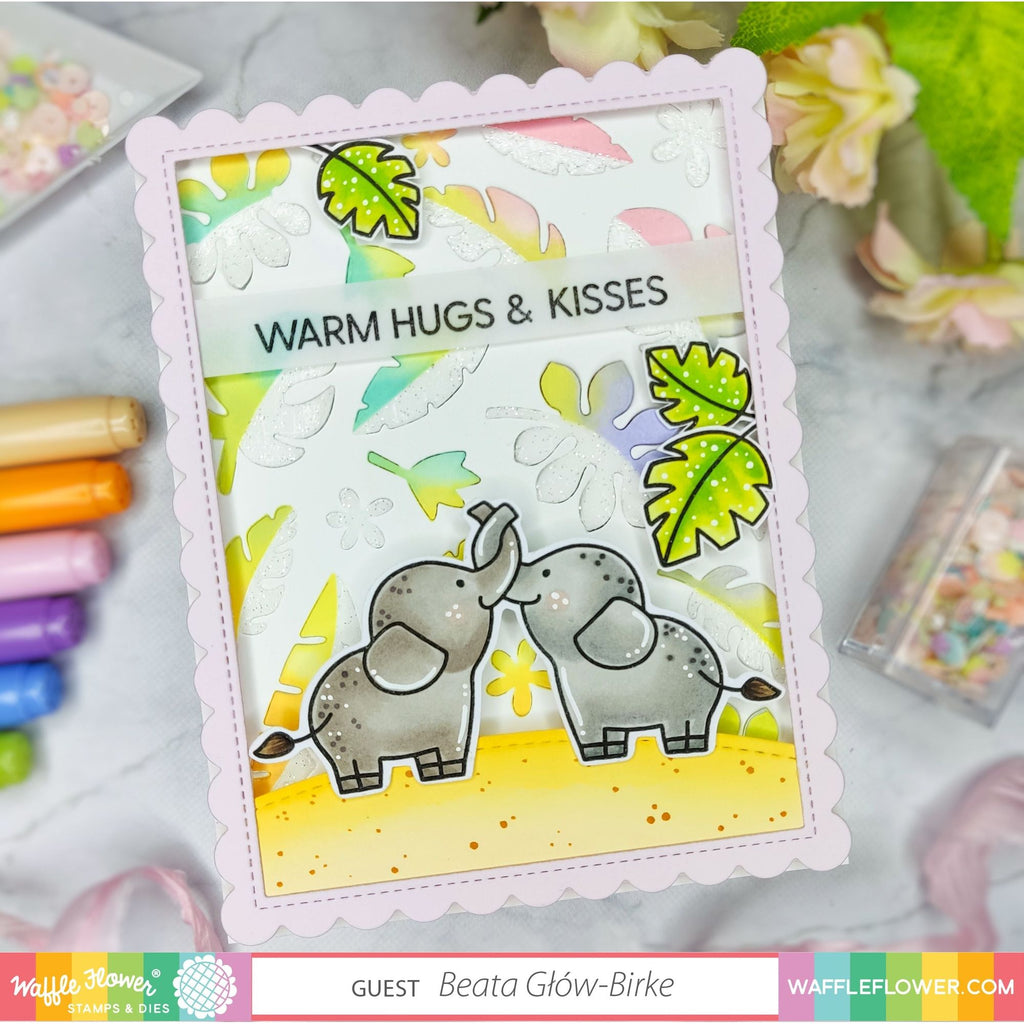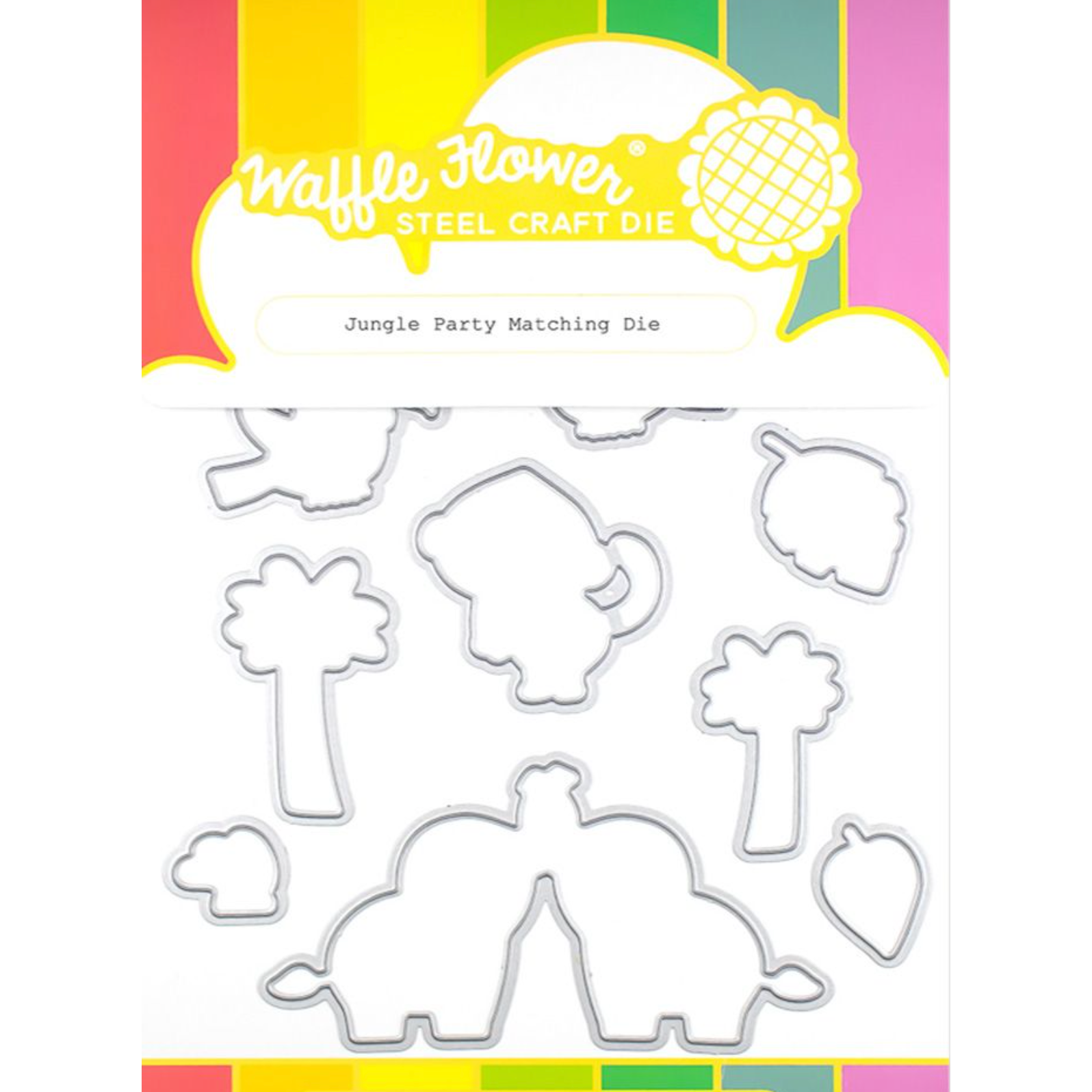 The Waffle Flower Jungle Party Matching Dies are designed to perfectly complement the Jungle Party Stamp Set. These dies allow you to easily cut out the stamped images from the Jungle Party Stamp Set, adding dimension and depth to your jungle-themed crafting projects.