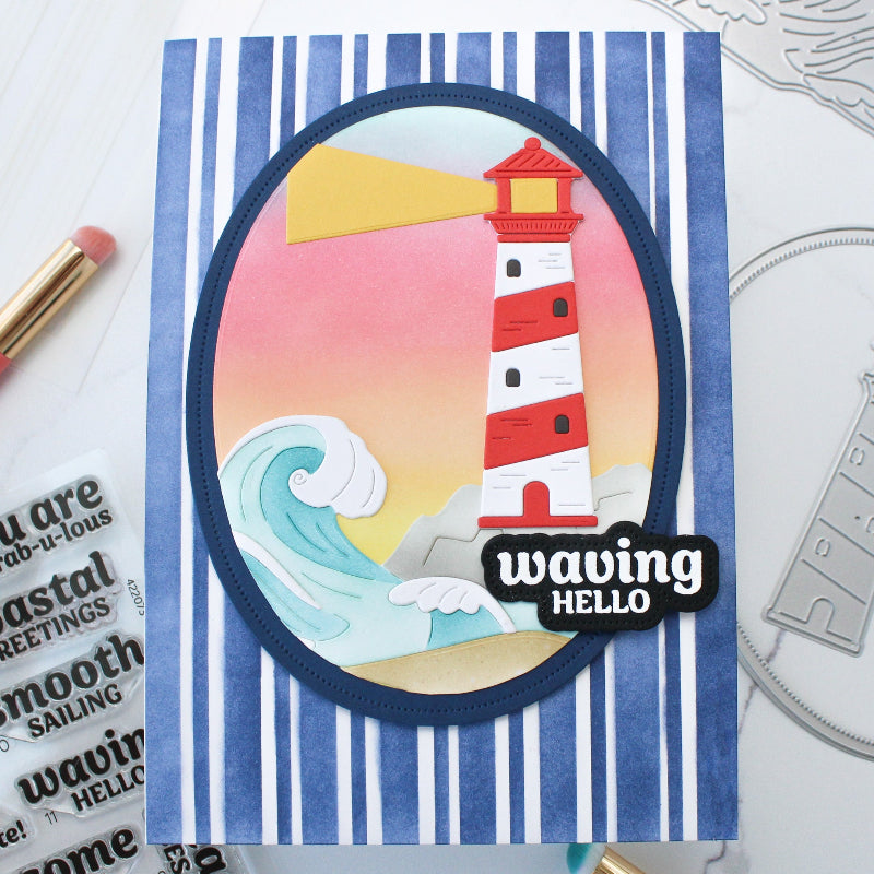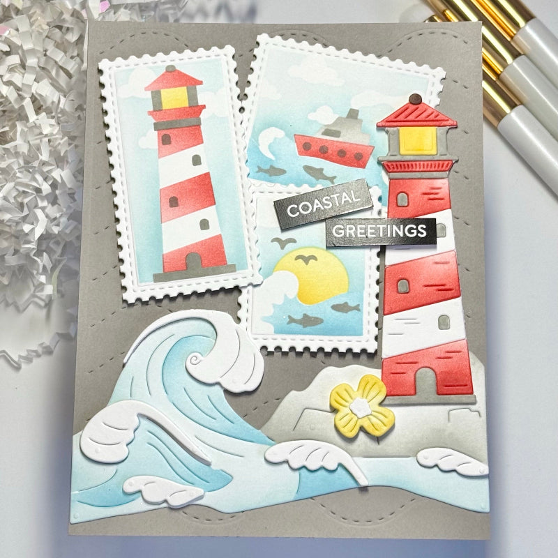 The Waffle Flower Lighthouse Dies set lets you build your own charming lighthouse for nautical and coastal-themed projects. This fun set includes all the pieces needed to assemble a layered lighthouse with a coordinating light beam—perfect for scene building, summer cards, or beachy designs. Add it to ocean backdrops or pair it with other coastal elements for extra detail and dimension.