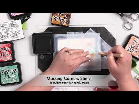 Waffle Flower Masking Corners Stencil is a versatile tool designed for precise and clean ink blending. You can trim the stencil apart at the connection points to create two separate corner masks and a square mask with a small circle opening in the center. The corner pieces are ideal for isolating rectangular or square areas, such as the windows in the Postage Collage Die. The square mask is perfect for detailed work by helping to isolate smaller stencil openings. The stencil measures approximately 5.25 x 6.5 inches.