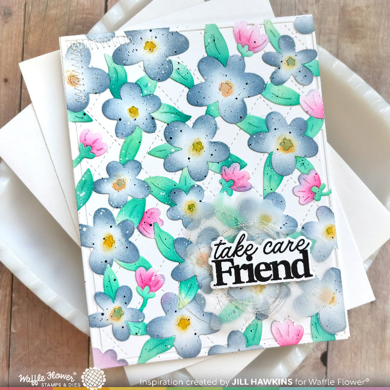 The Waffle Flower Mod Blossom Die creates a bold, graphic floral background perfect for adding a modern touch to your projects. Designed for easy use, the thin outer border keeps the delicate edge pieces together while handling—simply trim it off after adhering the die-cut panel to your backing layer. For effortless coloring, pair it with the coordinating Mod Blossom Stencils 421937, sold separately, to bring the flowers to life with vibrant shades. One die measuring 4.25 x 5.5 inches is included. Perfect for creating striking backgrounds on cards, scrapbook pages, and more!