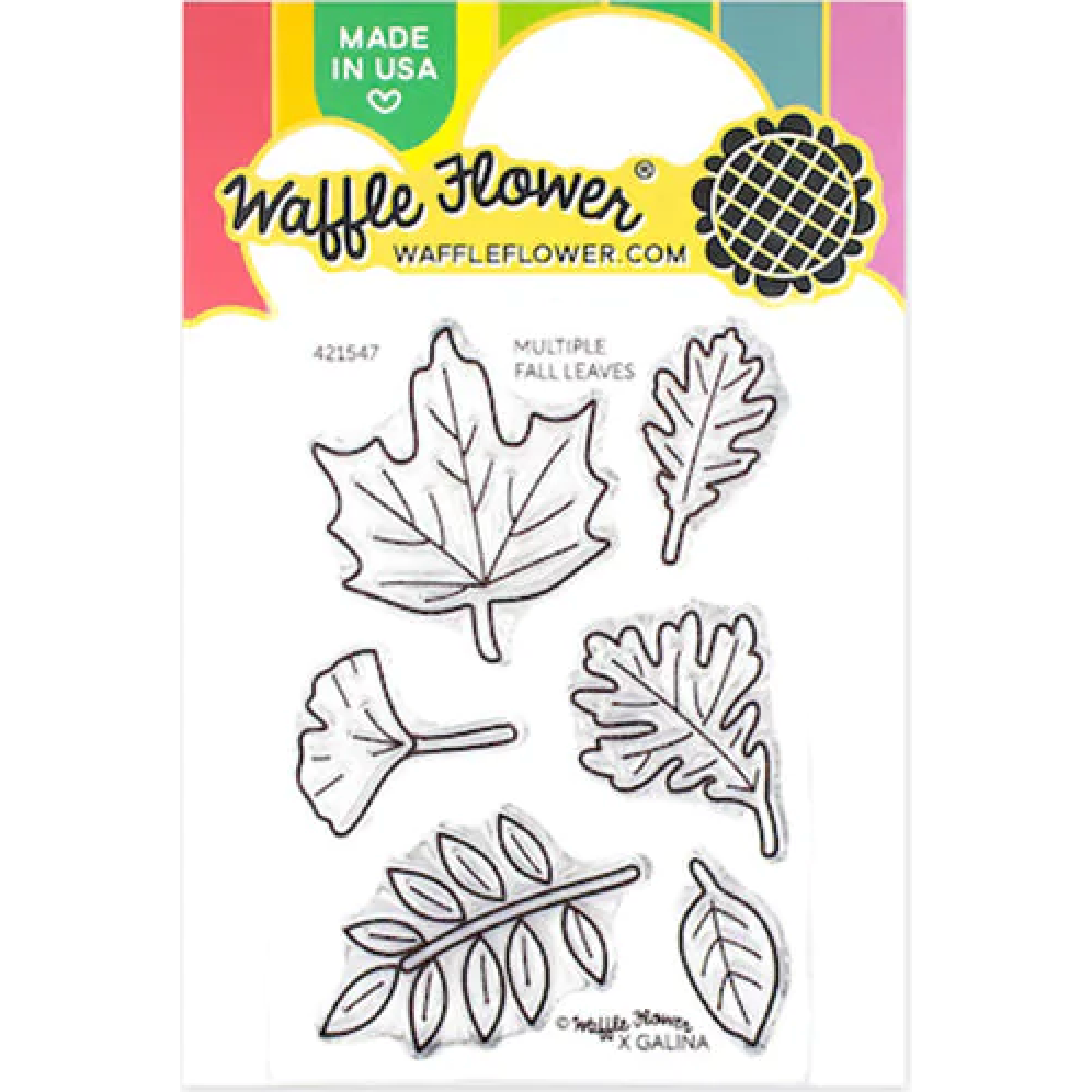 Waffle Flower Multiple Fall Leaves Clear Stamps is a compact 2 x 3 inch clear stamp set featuring six different leaf designs, perfect for creating custom autumn-themed backgrounds and accents. These detailed stamps can be colored to suit your project and work beautifully on their own or with the coordinating Multiple Fall Leaves Die-n-Stencil Set 421548, sold separately. Use without the veins die for a clean, stamped look.