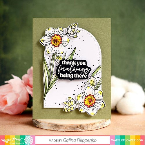 The Waffle Flower Narcissus Dies are designed to coordinate with the Narcissus Clear Stamps 421145, sold separately. This set includes 6 de-tabbed dies and comes with a magnetic storage sheet for added convenience. These high-quality dies provide clean, precise cuts and are compatible with all leading desktop die-cutting machines, perfect for adding dimension to your floral and birthday-themed projects.