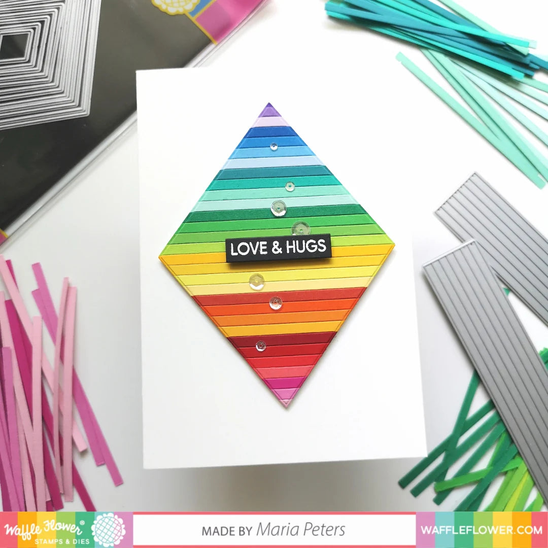 A popular geometric shape in our nesting basics line. Sized for A2 cards. 1/8" border when stacked with the layers next to each other.