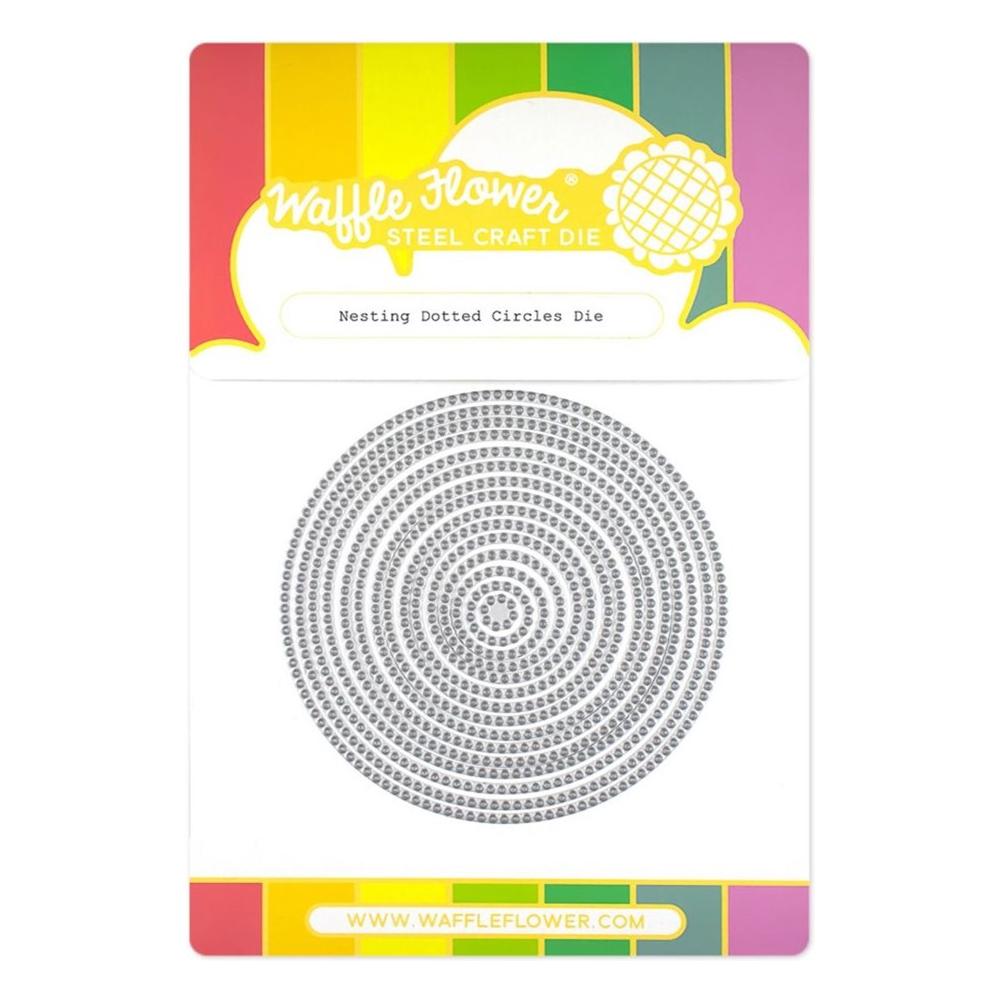 The Waffle Flower Nesting Dotted Circles Dies are a set of 15 circle dies that feature a dotted design inspired by their line of stitching dies. This set is designed to work with their nesting basics dies, allowing you to mix and match rectangles, squares, circles, and diamonds to add visual interest to your cards. You can even try connecting the dots with threads when you feel like stitching.