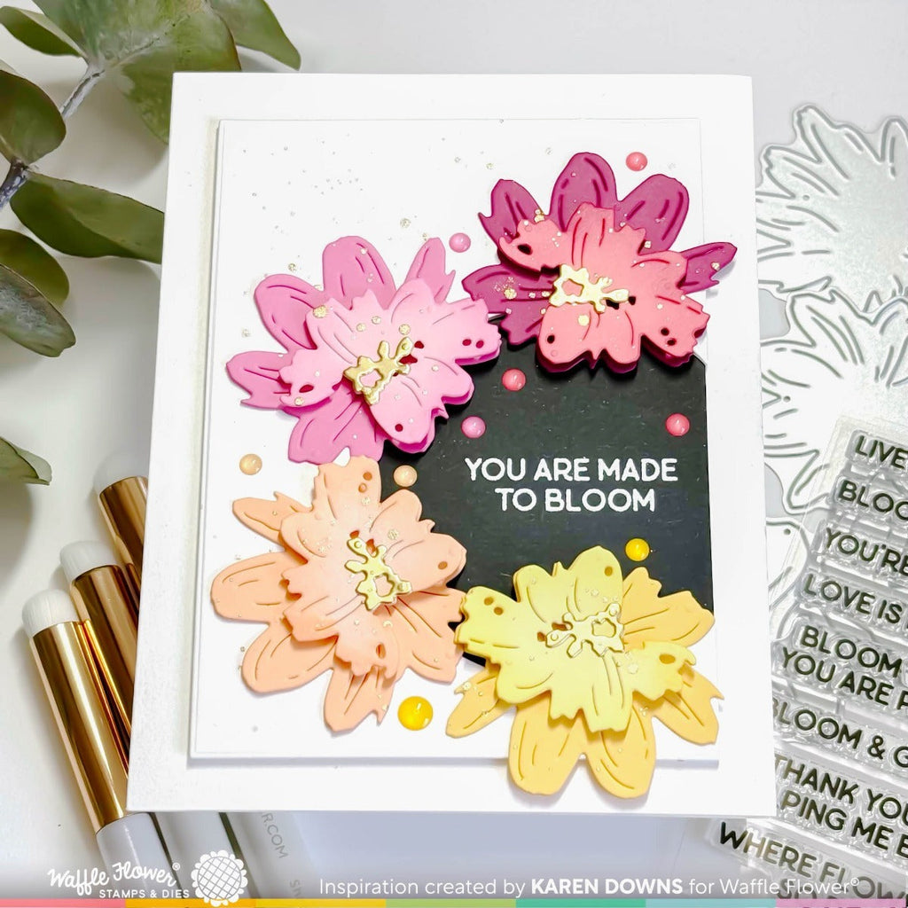 Introducing the Waffle Flower Painted Flowers Layering Dies, a delightful set designed to create beautifully layered floral elements with a loosely painted style.