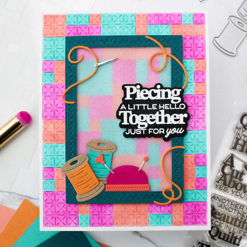 The Waffle Flower Patchwork Stencils are designed to coordinate with the Tiny Square Texture Die 421920, sold separately, to create quilt-inspired backgrounds. This set includes three 5.25 x 6.5 inch layering stencils that can be used individually for a clean, modern look or combined for a richly detailed design. Perfect for ink blending, pastes, and other mixed media techniques, whether used on their own or layered with the texture die.