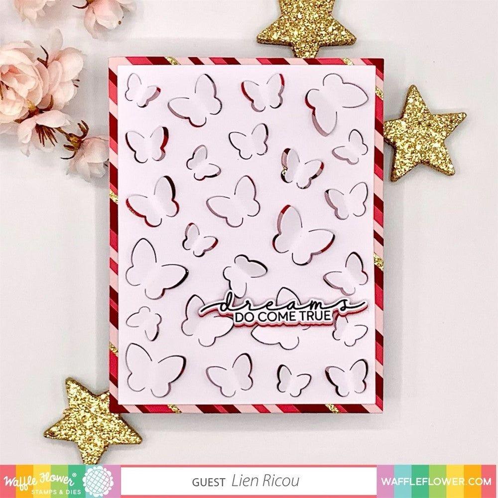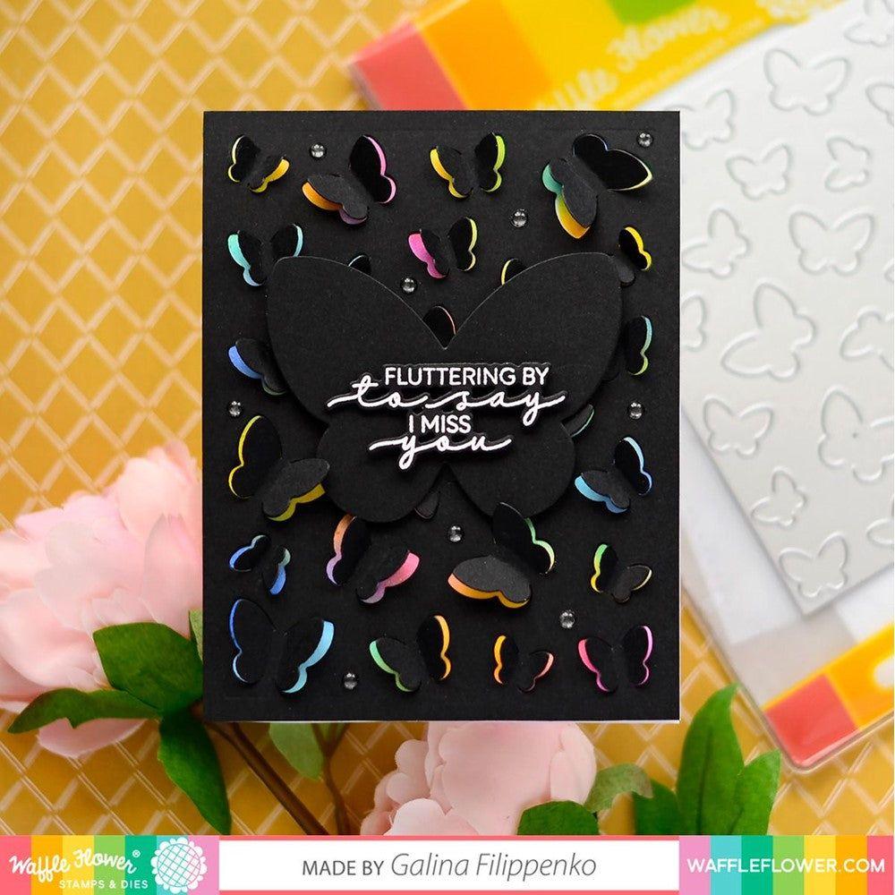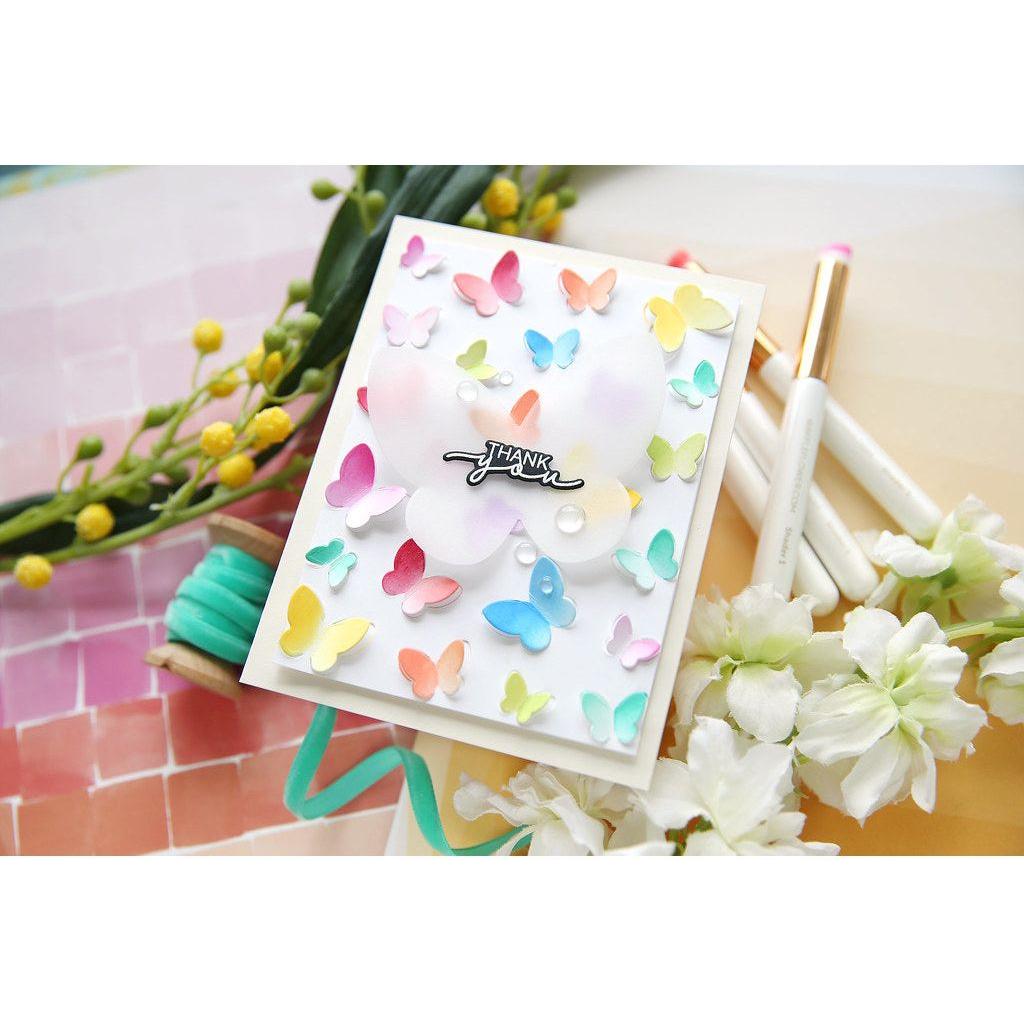 The Pop-up Butterfly Panel Die by Waffle Flower is a fantastic way to add movement and excitement to your card designs. This die boasts a creative partial-cut design that cuts butterfly wings that can be utilized either flat or lifted up for a 3D effect. To add a splash of color to your butterfly, consider using the Duo-tone Butterfly Stencil Duo, or try experimenting with specialty paper to make them stand out even more. A2 sized panel die.
