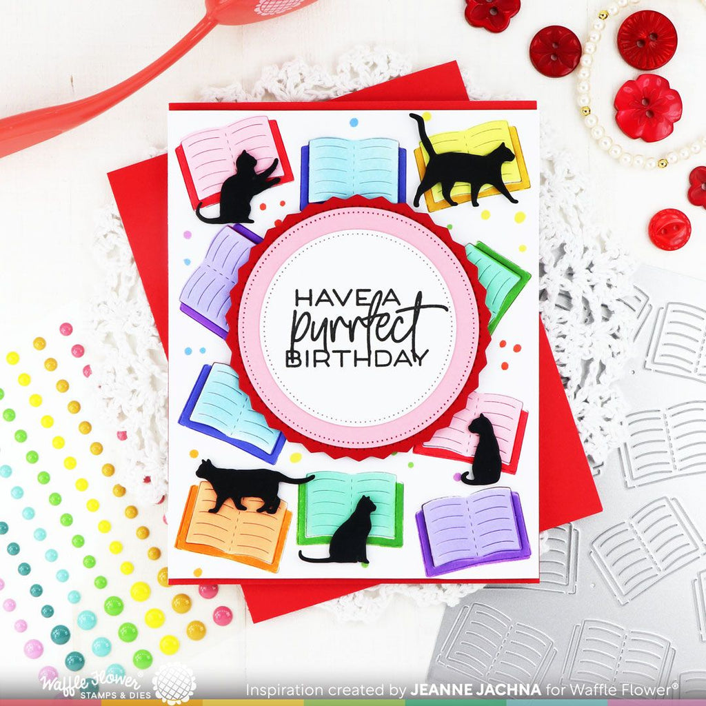 Waffle Flower Purrfect Sentiments Matching Dies are designed to coordinate with the Purrfect Sentiments Clear Stamps 421541, sold separately. These dies allow for precise cutting of the stamped sentiments, making it easy to add dimension and polish to your projects. Compatible with most leading die cutting machines.