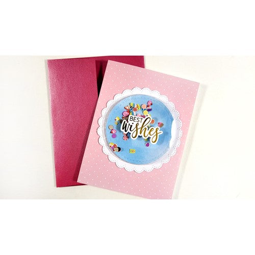 Made from heavy-weight high-shine clear acetate sheets with pre-scored lines for the tabs to quickly wrap around a 3 x 3 inch circle size cardstock panel.