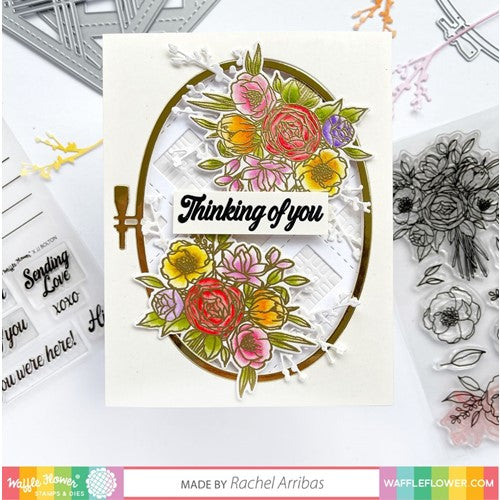 The Small Bouquet Stamp Set by illustrator Karla Jodoin features a charming petite bouquet and a variety of blooms, stems, and leaves to create beautiful floral designs. The intricately detailed stamps work well for a variety of techniques including heat embossing and coloring with markers/paints. The smaller scale images work well with sets like the Special Delivery Die and Vase Variety Die.