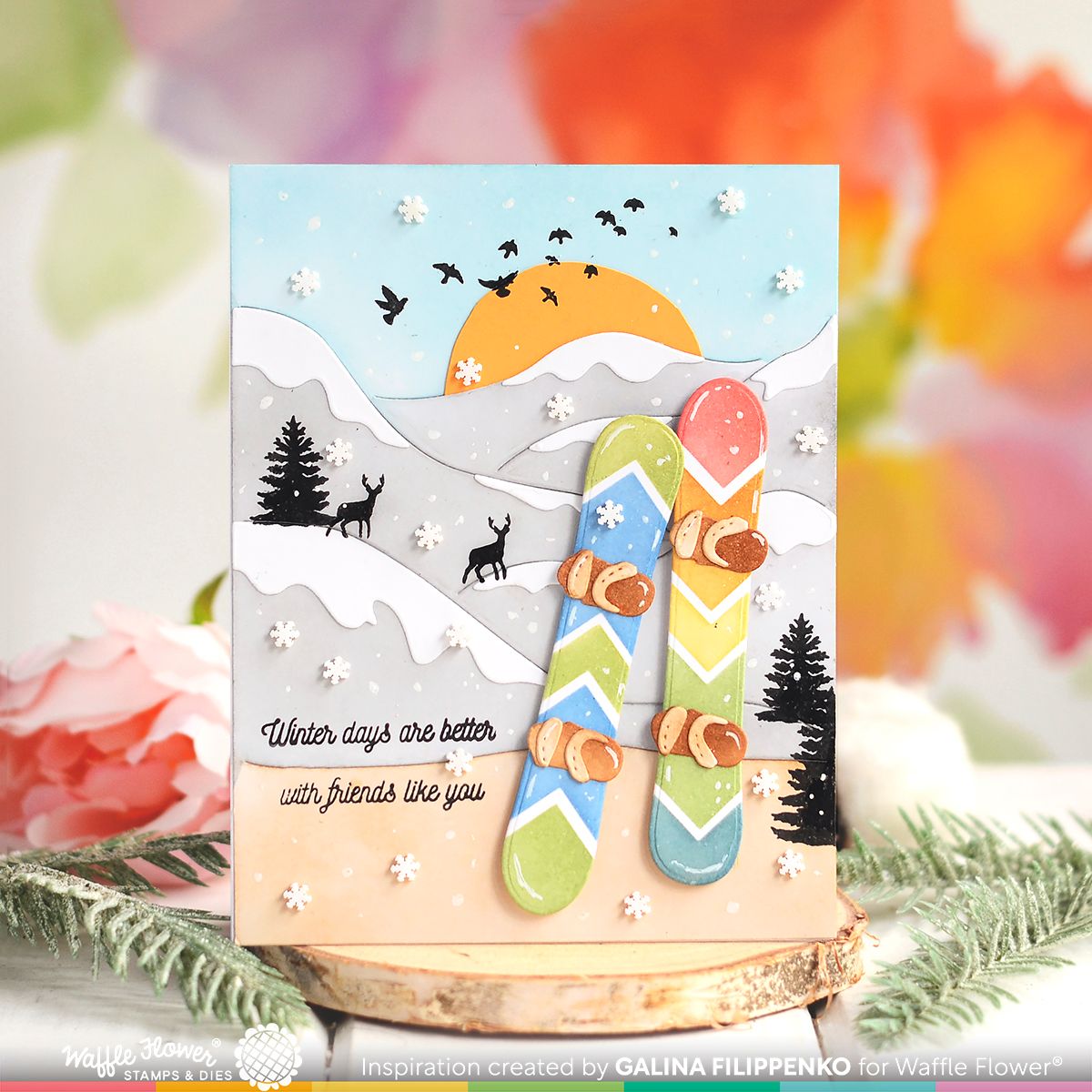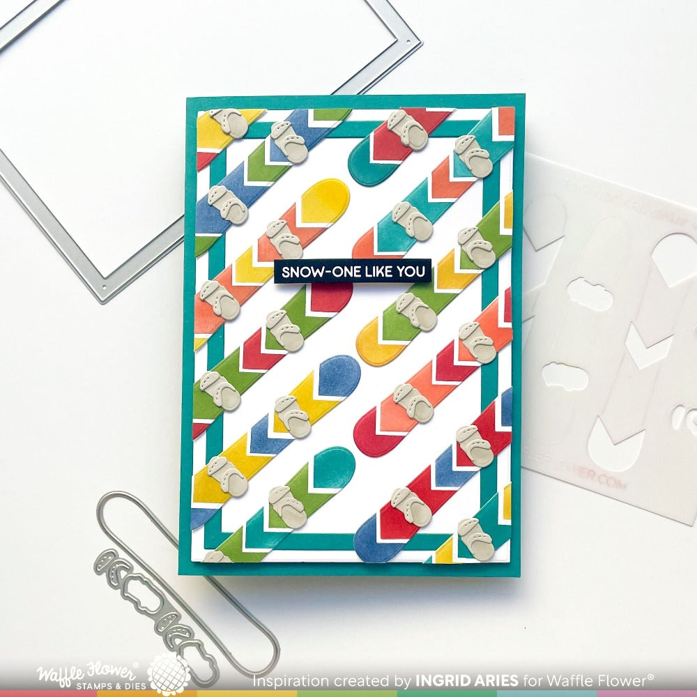 The Waffle Flower Snowboard Die-n-Stencil set is a creative tool that allows you to hit the crafting slopes and customize your own set of skis and snowboards. This set includes dies and coloring stencils, giving you the flexibility to cut out the shapes and add intricate designs or color patterns to your snowboard and ski elements. With this set, you can craft personalized and themed projects related to winter sports and activities, making it a fun and engaging addition to your crafting supplies.