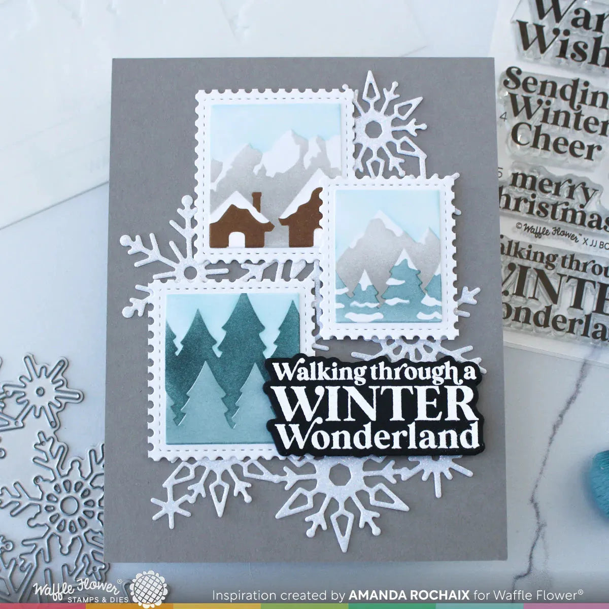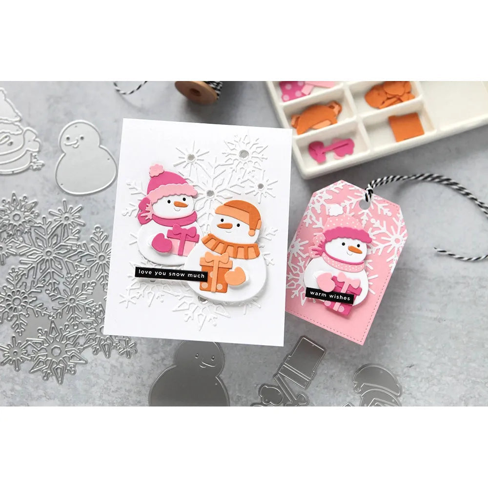 The Waffle Flower Snowflake Cluster Die showcases a beautiful arrangement of snowflakes, perfect for layering on winter projects. This versatile die works well on both top-folding (vertical) and side-folding (horizontal) cards, offering design flexibility. You can also trim individual snowflakes to use separately, adding even more creative options. It's ideal for bringing a frosty touch to holiday or winter-themed crafts! One 3.88 x 5.19 inch die included.