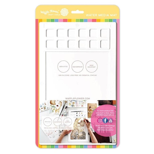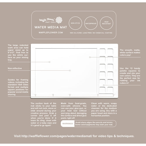 This water media mat is packed with value-added features. The smooth, non-stick surface makes it perfect for techniques such as ink blending, ink transfer, and faux watercolor stamping. You can even make your own enamel dots on it!