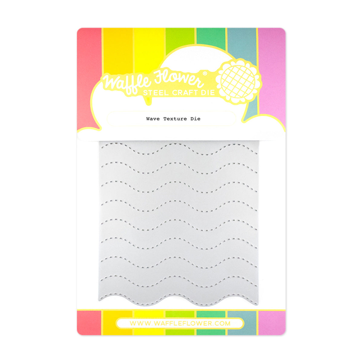 The Waffle Flower Wave Texture Die offers a subtle texture to assist in achieving a professional appearance. With no border cutlines, users can apply texture to their entire card front or employ partial die-cutting for varied effects.