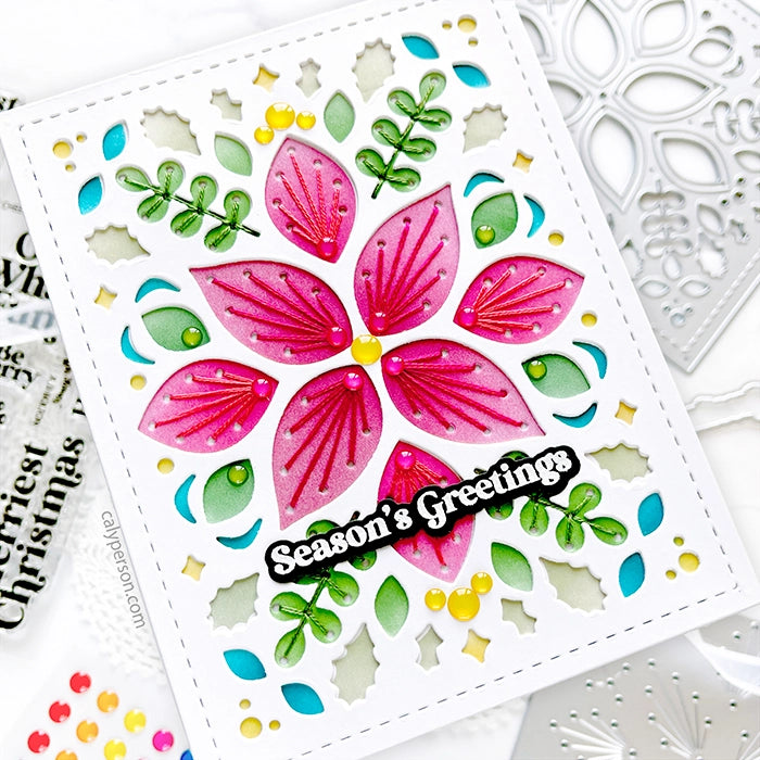 This elegant stitching die is the perfect card front for your holiday projects this year. The image of this beautiful poinsettia will wow all of your friends and family.