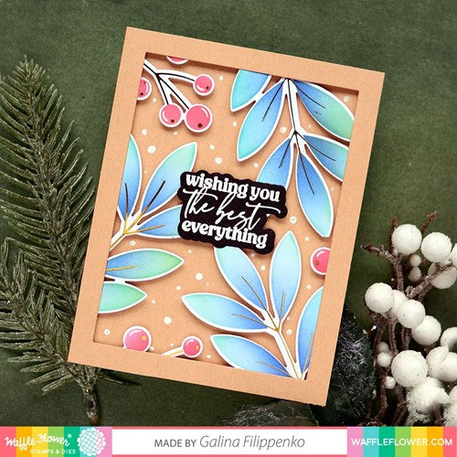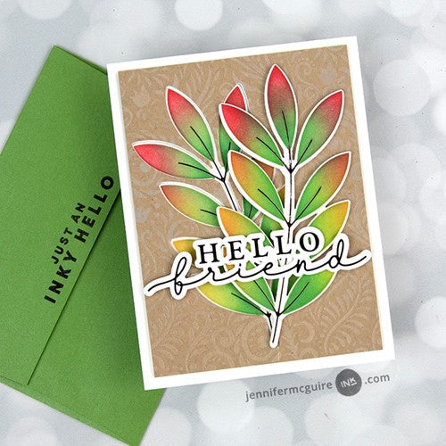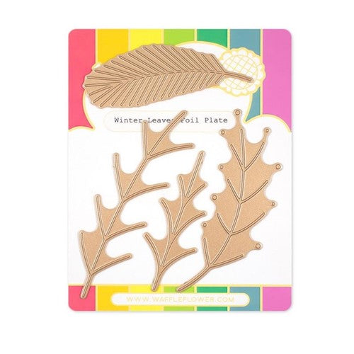 This set includes foil plates for branches and veins that can be easily colored by the Winter Leaves Coloring Stencil! Matching dies are available for use with both the positive and negative foiled pieces. Large scale is designed for use as a focal point. A stamp set with reversed images is also available.