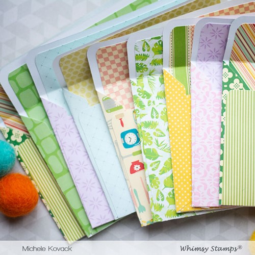 Whimsy Stamps Die Collection A2 Envelope Builder Die Set designed by Denise Lynn and Deb Davis for Whimsy Stamps.