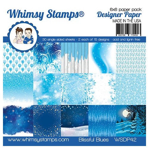 Whimsy Stamps 6x6 inch designer paper packs Blissful Blues designed by Deb Davis for Whimsy Stamps.