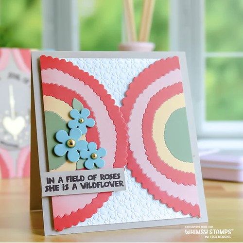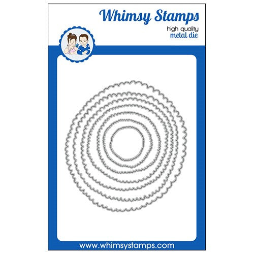 Whimsy Stamps Die Collection Boho Scallop Circles Die Set designed by Deb Davis and Denise Lynn for Whimsy Stamps. These dies create circle shapes with scalloped edging. Each circle is in a wonky hand drawn style. Coordinates with our Boho Basic Stitches and Boho Circle die sets, each sold separately.