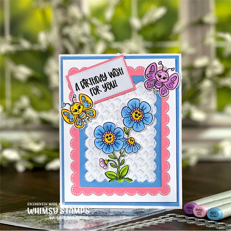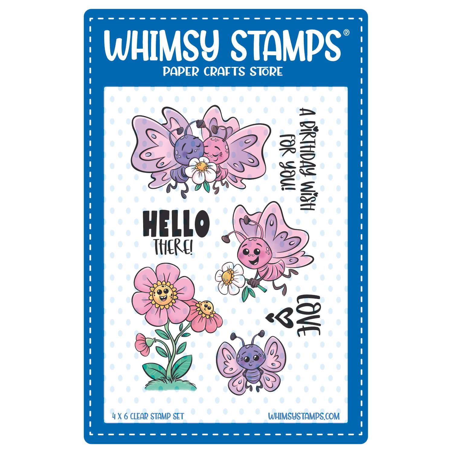 Introducing the Butterfly Wishes Clear Stamps from the Clearly Whimsy Stamps Collection features two adorable butterfly's, flowers, and sentiments.