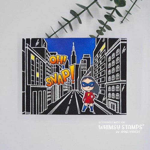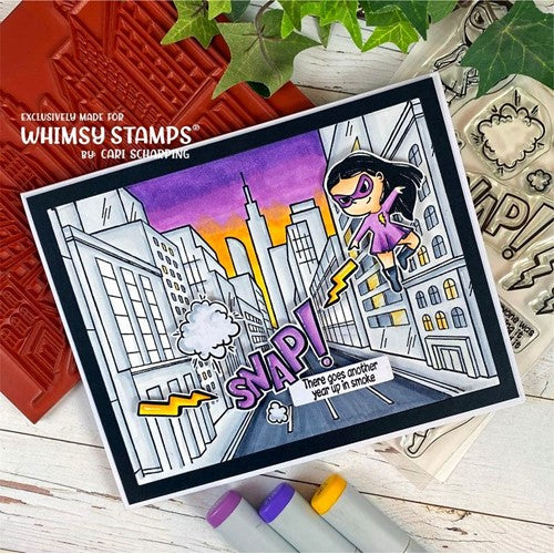 Whimsy Stamps Backgrounds Collection City Street Background designed by Deb Davis Amped2Stamp for Whimsy Stamps. The perfect background addition to our Comics Collection.