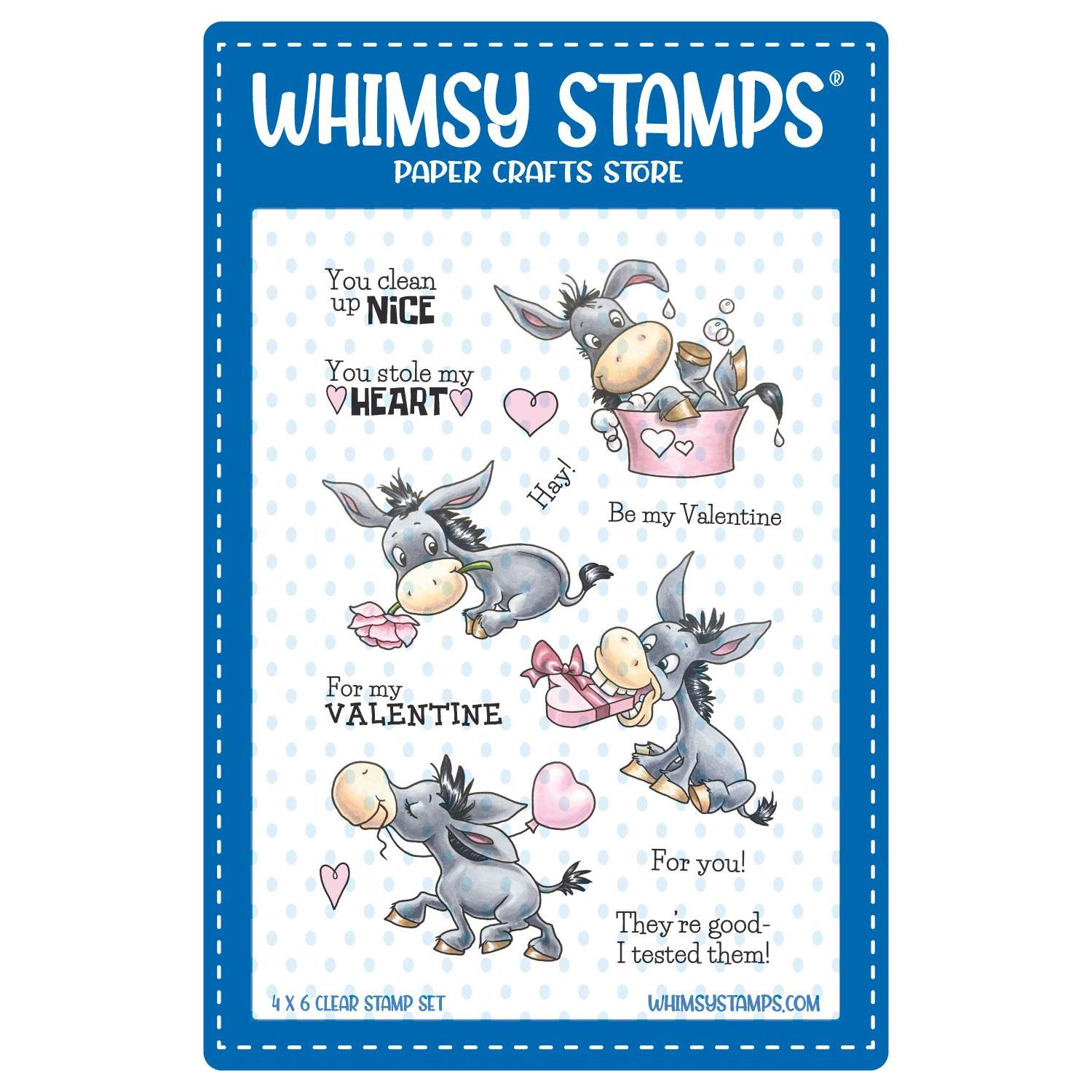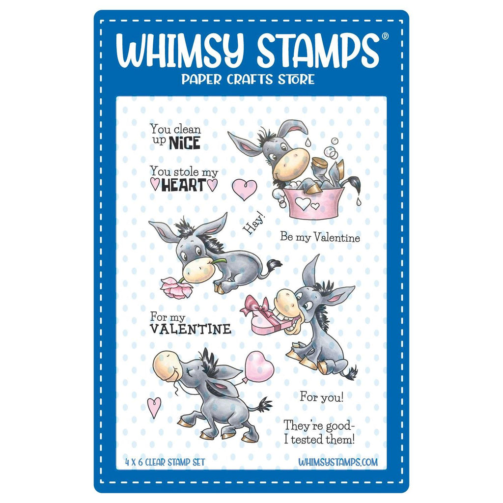 The Donkey Love Clear Stamps from the Clearly Whimsy Stamps Collection, designed by Crissy Armstrong for Whimsy Stamps, are a wonderful addition to your crafting supplies. This set offers high-quality photopolymer clear stamps that can be easily used with an acrylic block.