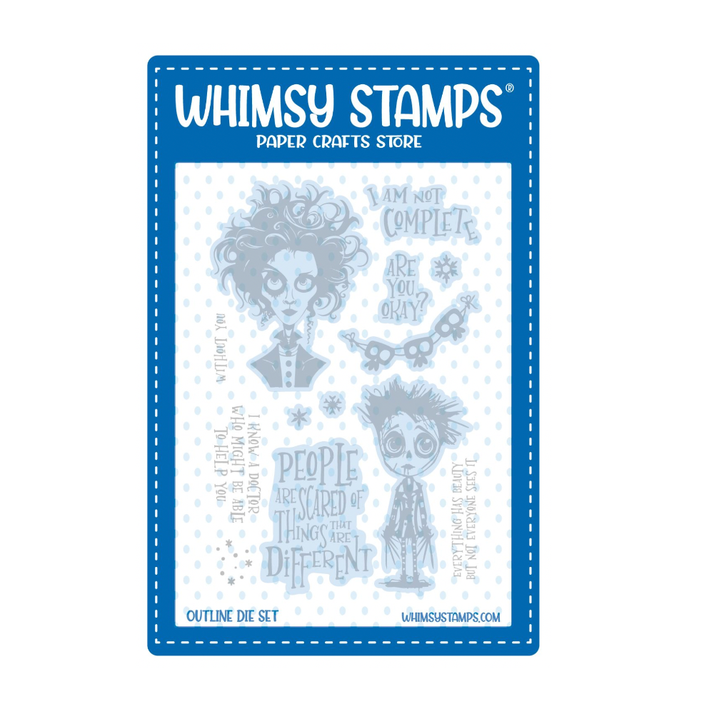 Whimsy Stamps Edward Outline Dies coordinate with the Edward Clear Stamps WSD336a, sold separately. This set includes 9 outline dies designed to cut out the stamped images and sentiments with ease, adding dimension and versatility to your projects. Compatible with most leading die cutting machines.