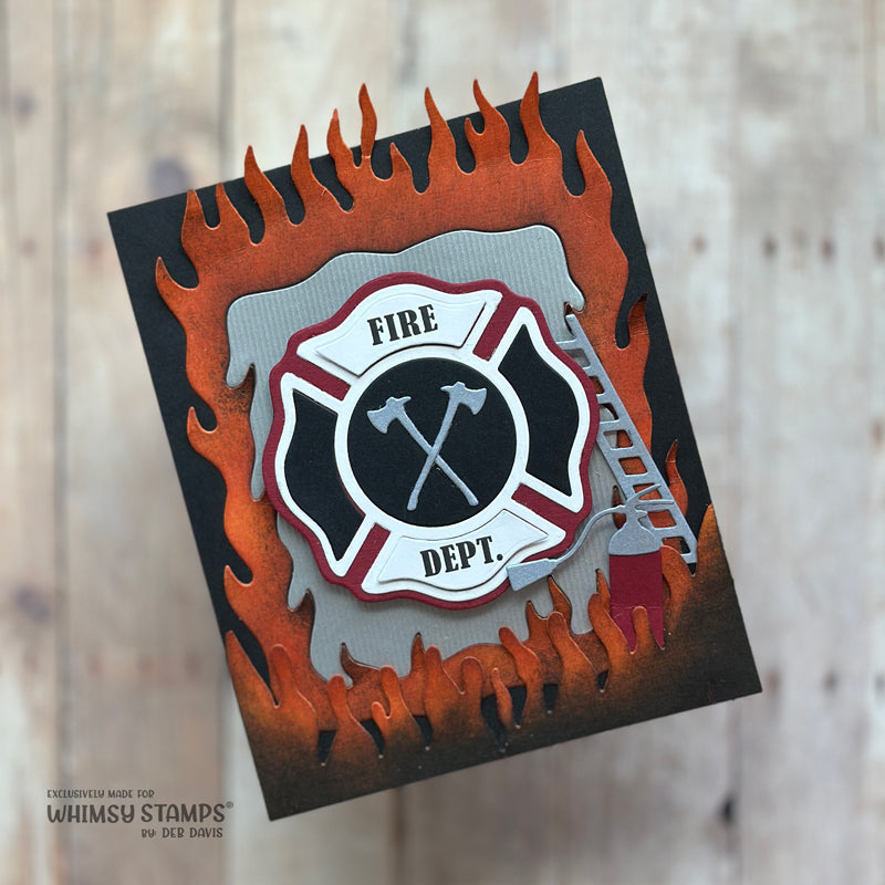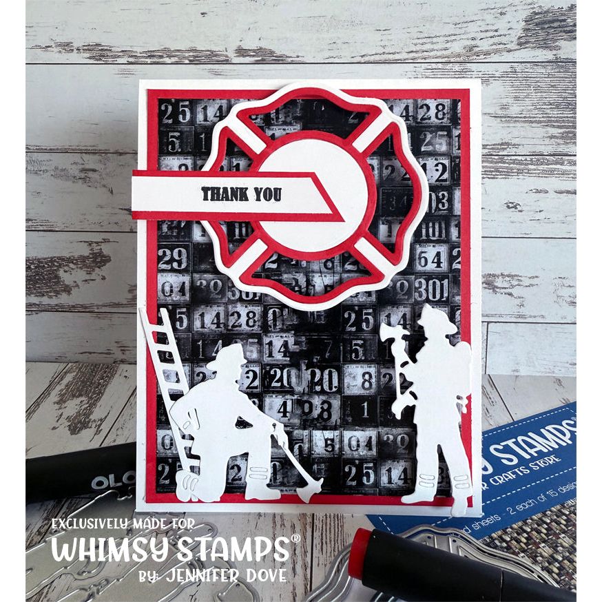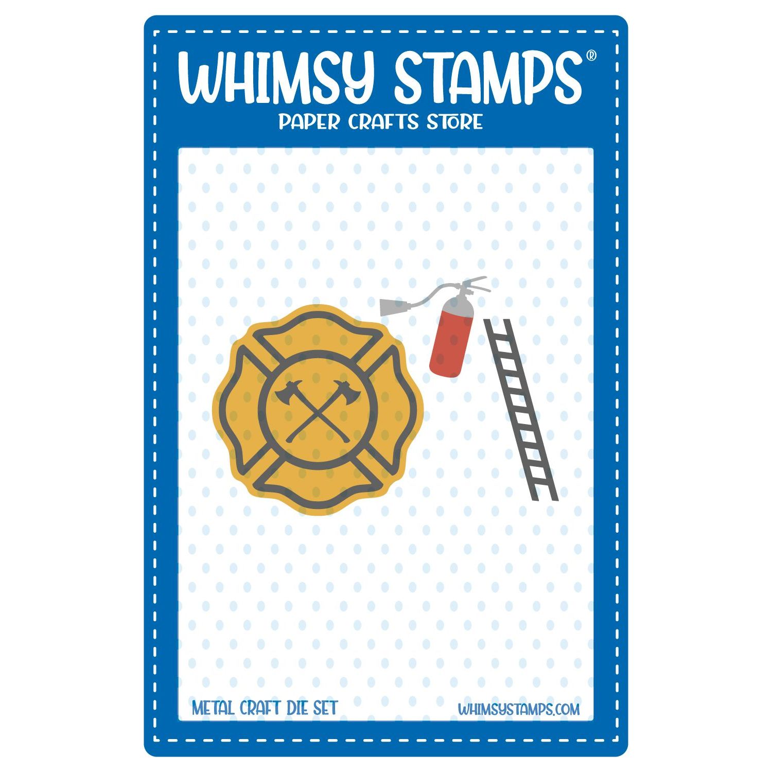 Whimsy Stamps Firefighter Accessories Dies is a set of 6 dies, including a fire extinguisher, ladder, two axes, and a Maltese Cross. Designed to coordinate with first responder-themed stamps and dies. Compatible with most die-cutting machines on the market.