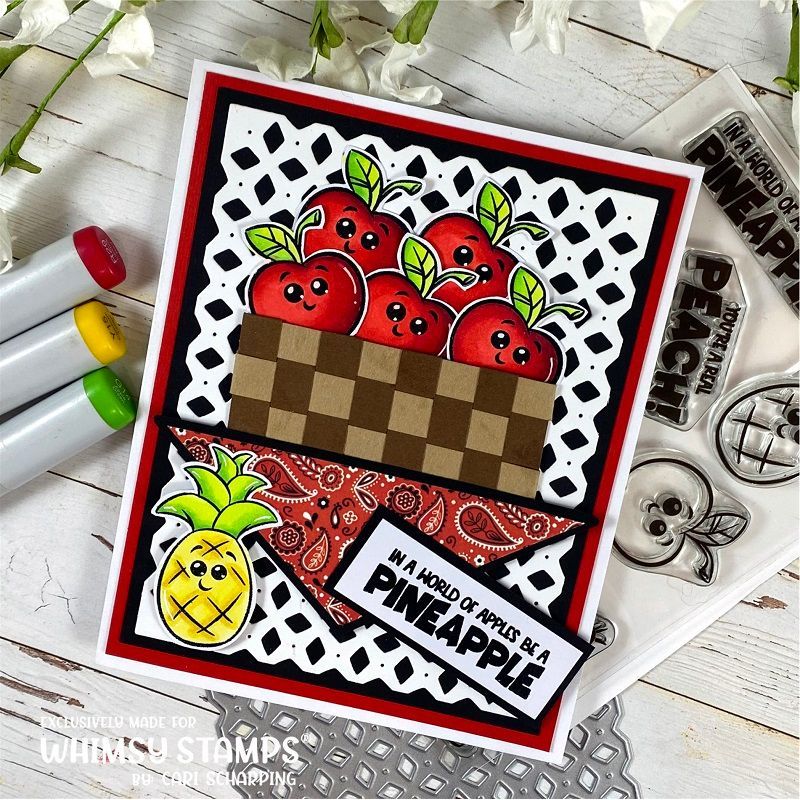 Introducing the Whimsy Stamps Fun Fruit Clear Stamps, a delightful addition to the Clearly Whimsy Stamps Collection. This image and sentiment set is expertly designed by Krista Heij-Barber exclusively for Whimsy Stamps.