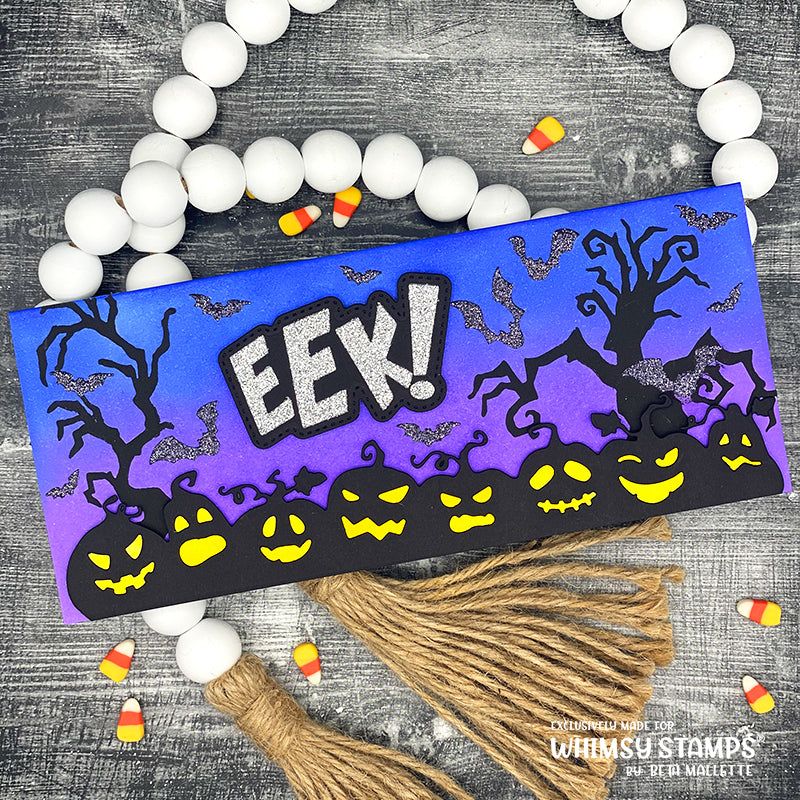 The Whimsy Stamps Halloween Trees and Grasses Stencil, illustrated by Crissy Armstrong for Whimsy Stamps, features 4 creepy trees and 4 different styles of grass, perfect for crafting the ultimate spooky scene. This versatile stencil can be used with ink and a sponge, modeling paste, or even an airbrush. Measuring approximately 6x9 inches, it is crafted from smooth plastic for easy cleanup. The larger size is ideal for slimline cards, as well as smaller cards or layouts. For best results, store the stencil flat. The black areas in the store display image represent the open sections of the stencil, while the white areas represent the stencil material.